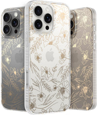 Lonli Hue For Iphone 16 Pro Max Case Gold Floral Phone Case [360 Shock Absorbent Bumper] Cute, Unique And Aesthetic Phon