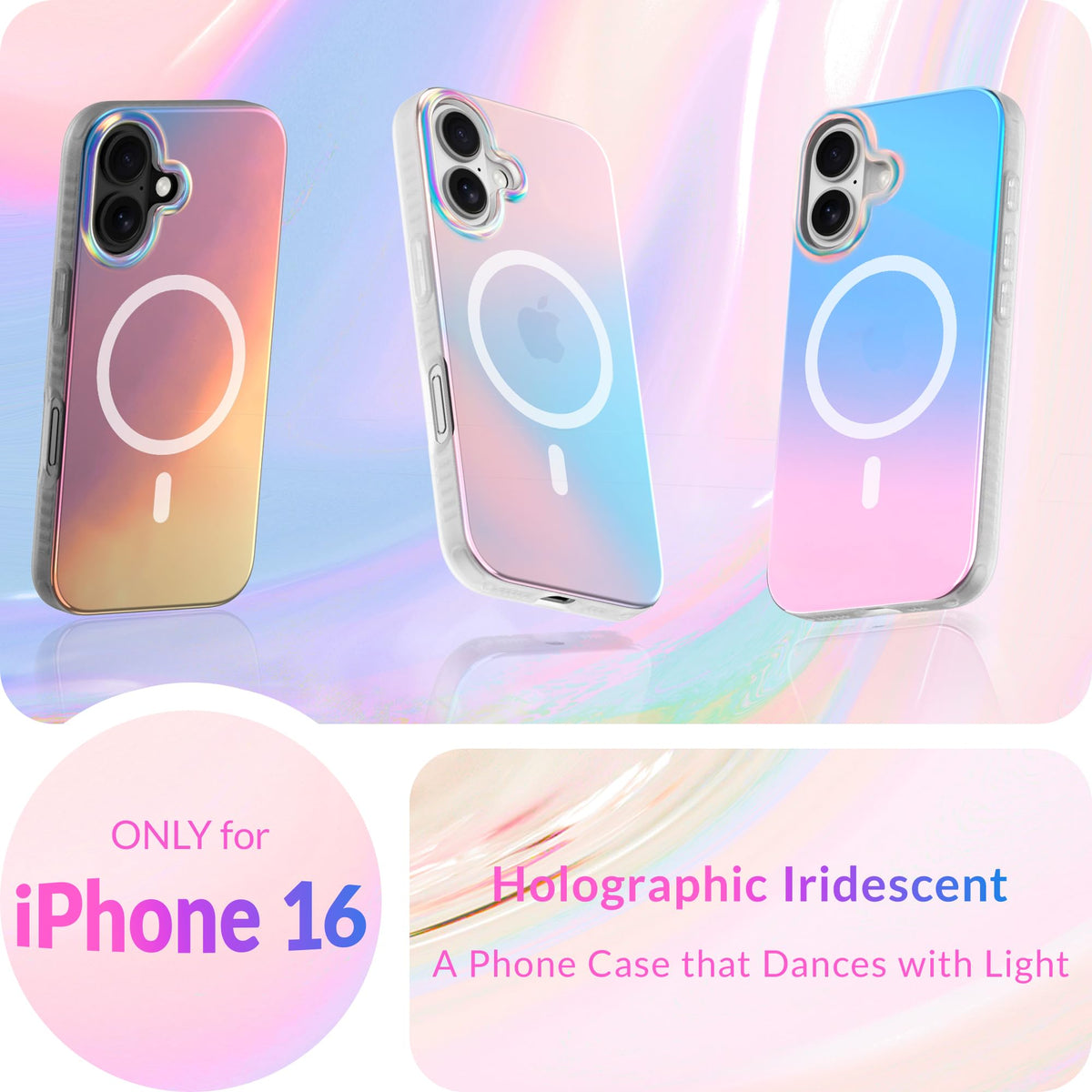Lonli Hue Iphone 16 Magnetic Case [Compatible With Magsafe] Holographic Iridescent Phone Case [360 Shock Absorbent Bumper]