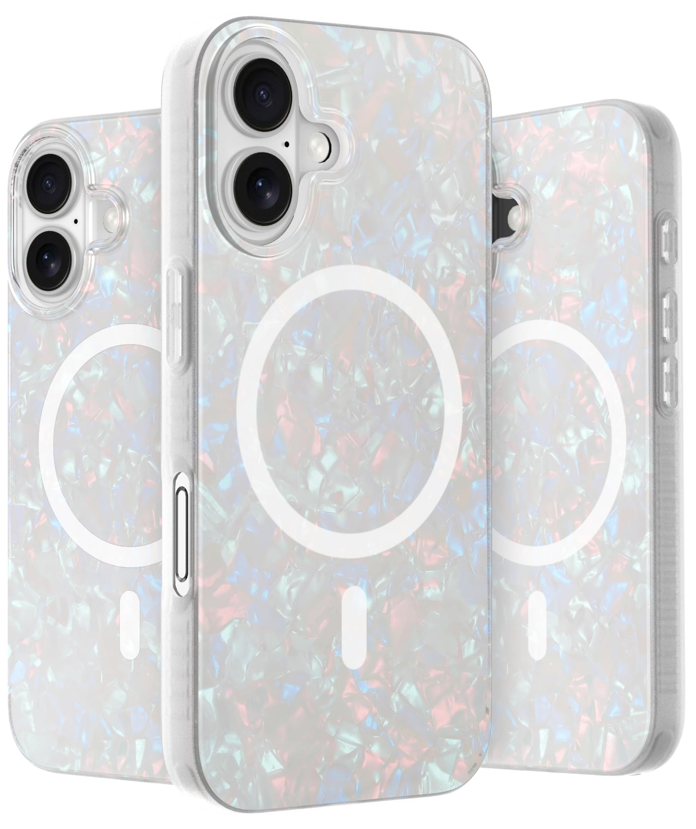 Lonli Hue Iphone 16 Magnetic Case [Compatible With Magsafe] White Pearl Tort Phone Case [360 Shock Absorbent Bumper] Cut