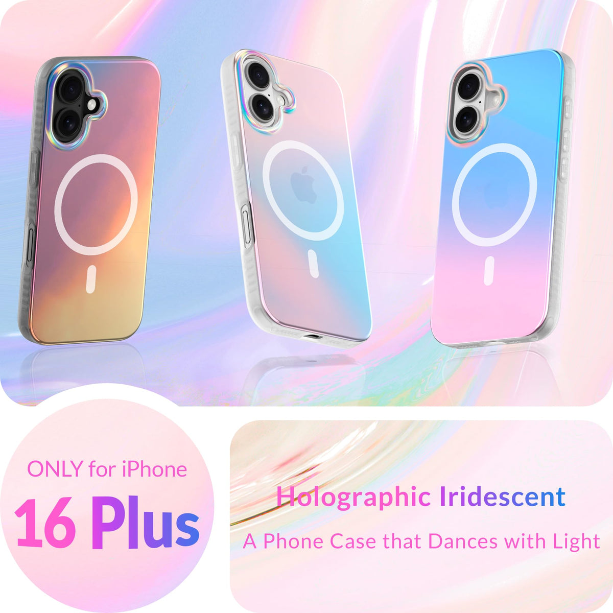 Lonli Hue Iphone 16 Plus Magnetic Case [Compatible With Magsafe] Holographic Iridescent Phone Case [360 Shock Absorbent Bu