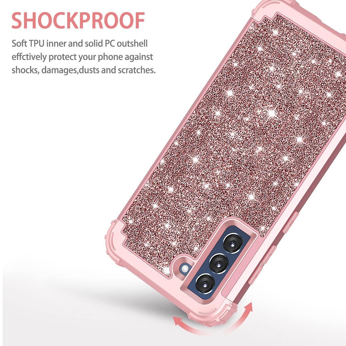 This 3 In 1 Shockproof Case Is Made Of Hard Pc Covered With Sparkly Shiny Faux Leather Soft Silicone A Soft Silicone Inner Case Tightly Grips To Your Phone While Absorbing Shocks And Bumps Simple Snap-On Design Polycarbonate Hard-Shell Case Perfectly Secure Your Device And Easy Access To All Buttons, Sensors, And Ports Package: 1X Hybrid Case For Samsung Galaxy S21 Fe 5G Please Note: Accessory Only, Phone Not Included How To Install 1Put Your Phone Inside The Silicone Layer Case 2Put The Silicone Layer Case Into The Back Cover 3Snap The Plastic Bumper On The Silicone Back Cover