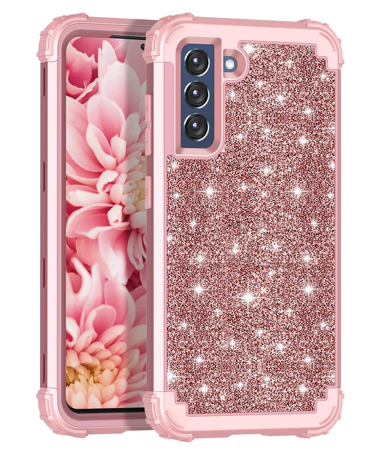Lontect For Galaxy S21 Fe 5G Case [Not Fit S21 5G] Glitter Sparkle Bling 3 In 1 Heavy Duty Hybrid Sturdy High Impact Shockproof