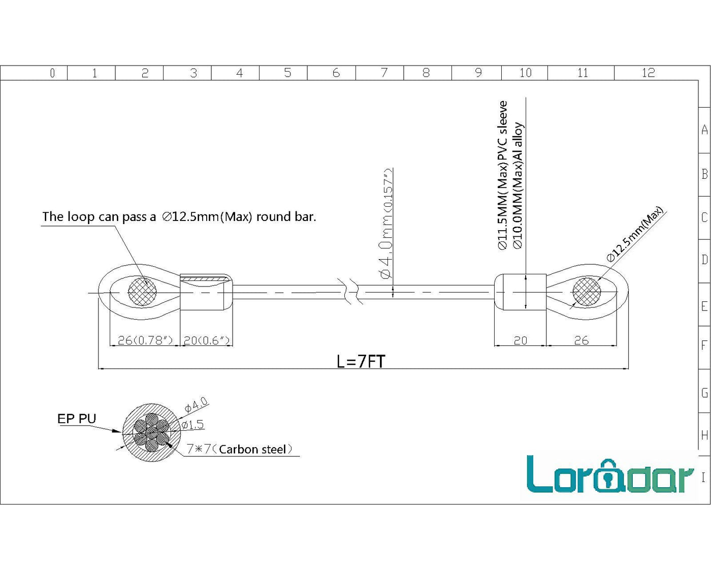 Loradar 4Mm Thick(5/32'') 7Ft Thin Security Braided Coated Steel Cable Anti Lost Steel Cable Luggage Lock Double Loop Steel Cabl