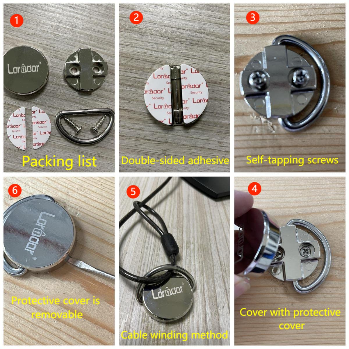 Q: Where can I use the LORADAR Security Anchor Base Plate?A: This anchor is suitable for various environments, including offices, shopping malls, classrooms, libraries, and exhibition halls, providing a secure connection point for your cable locks.