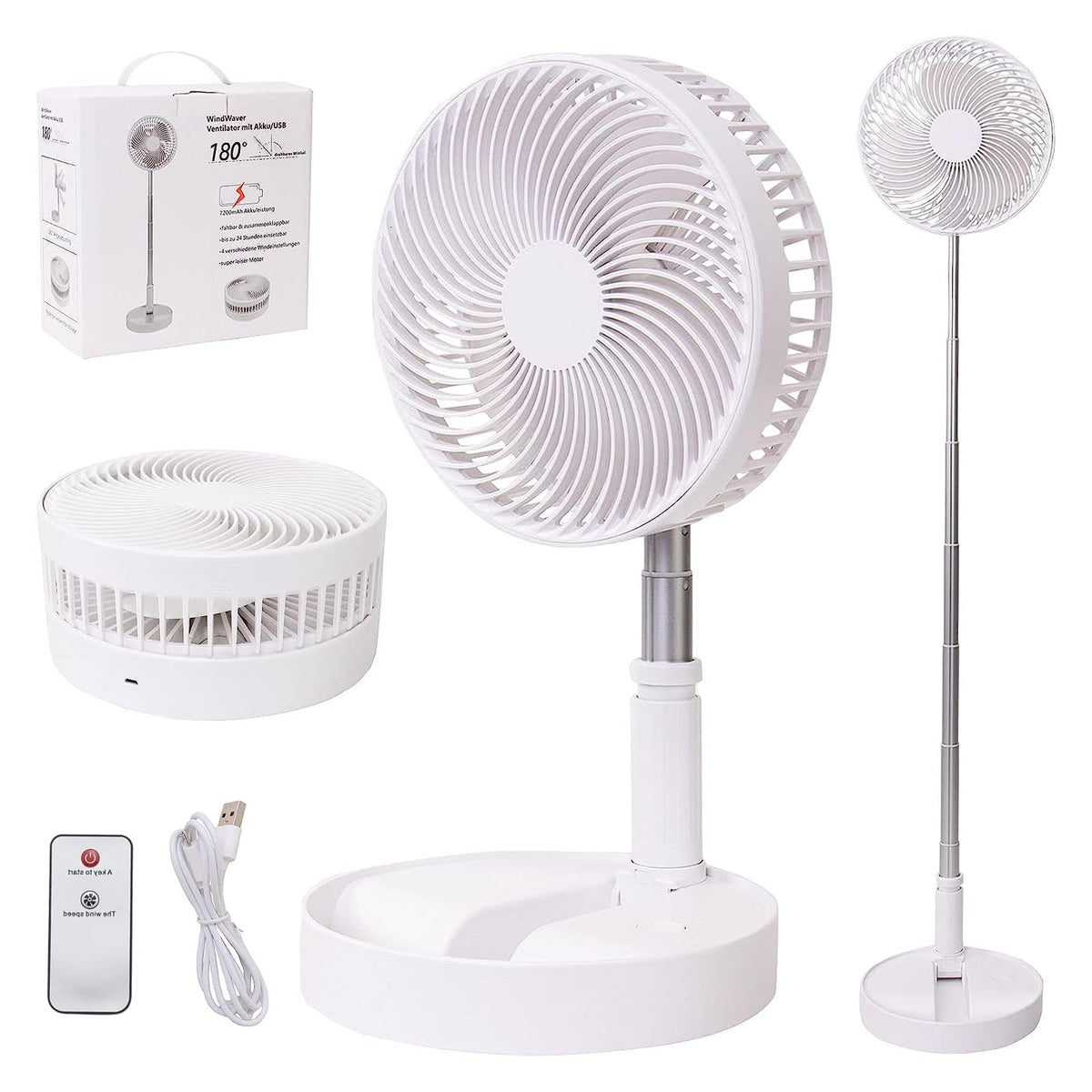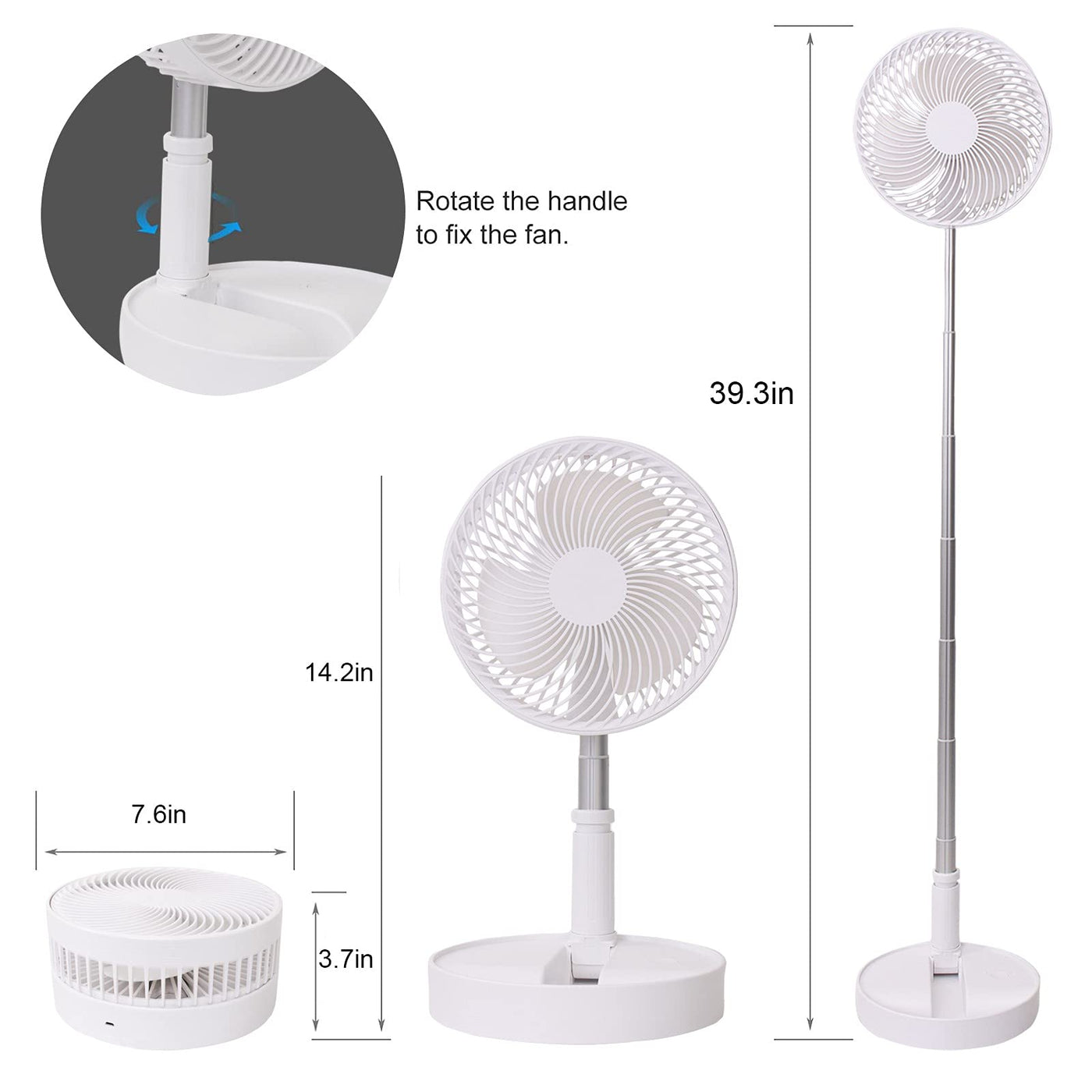 Portable Desk Fan,Foldable Fan Pedestal Stand Floor Fan Adjustable Height From 14.2 Inch To 39Inch, 4 Speeds & Time Settings, 3600Mah Rechargeable Battery Telescopic Oscillate Usb Charging (White)