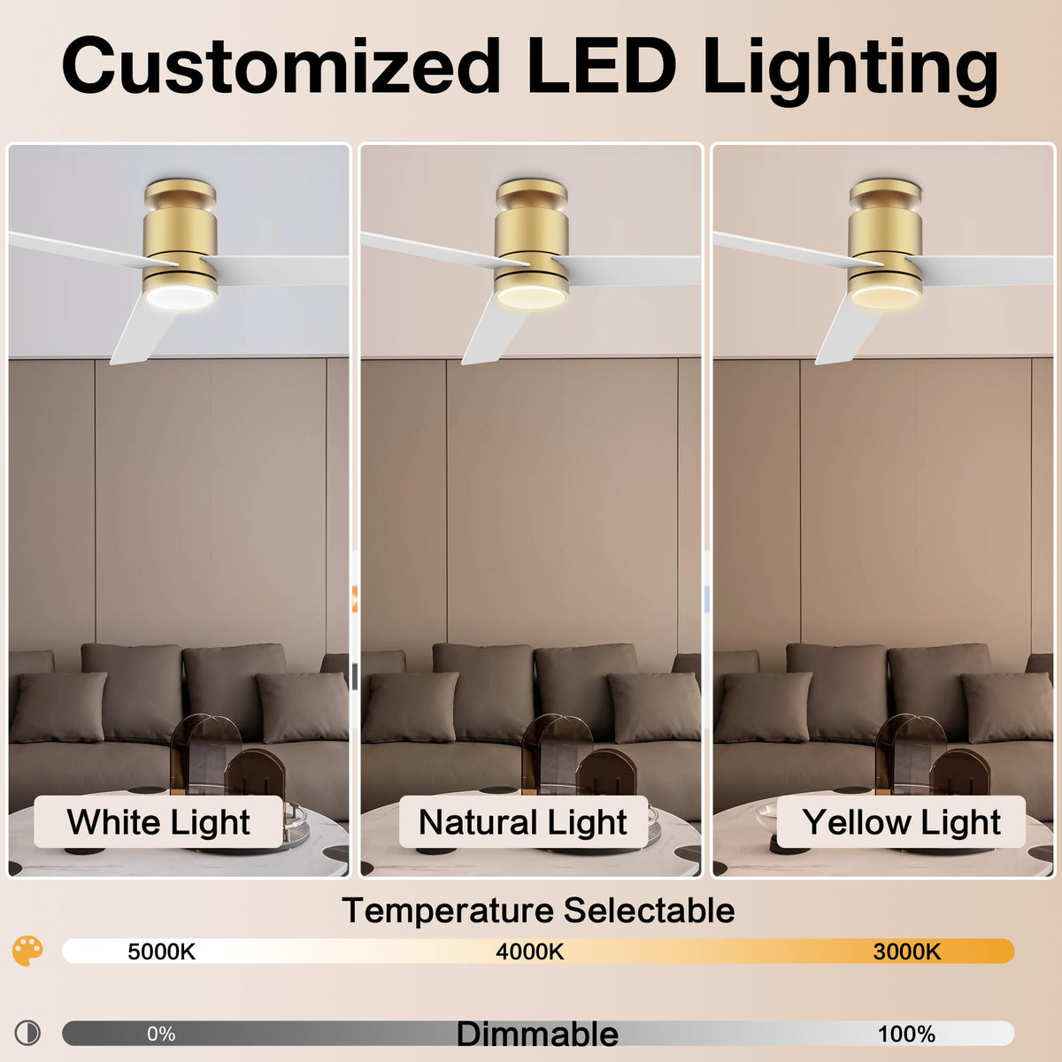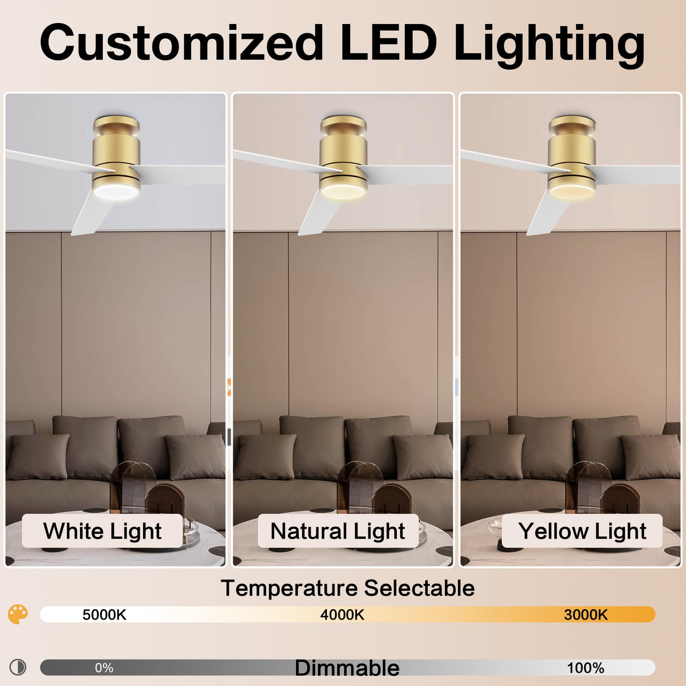 Lorpies 52 Smart Flush Mount Ceiling Fans With Lights Remote,Quiet Dc Motor,Outdoor Indoor Low Profile Ceiling Fan,Voice Cont