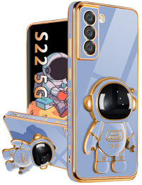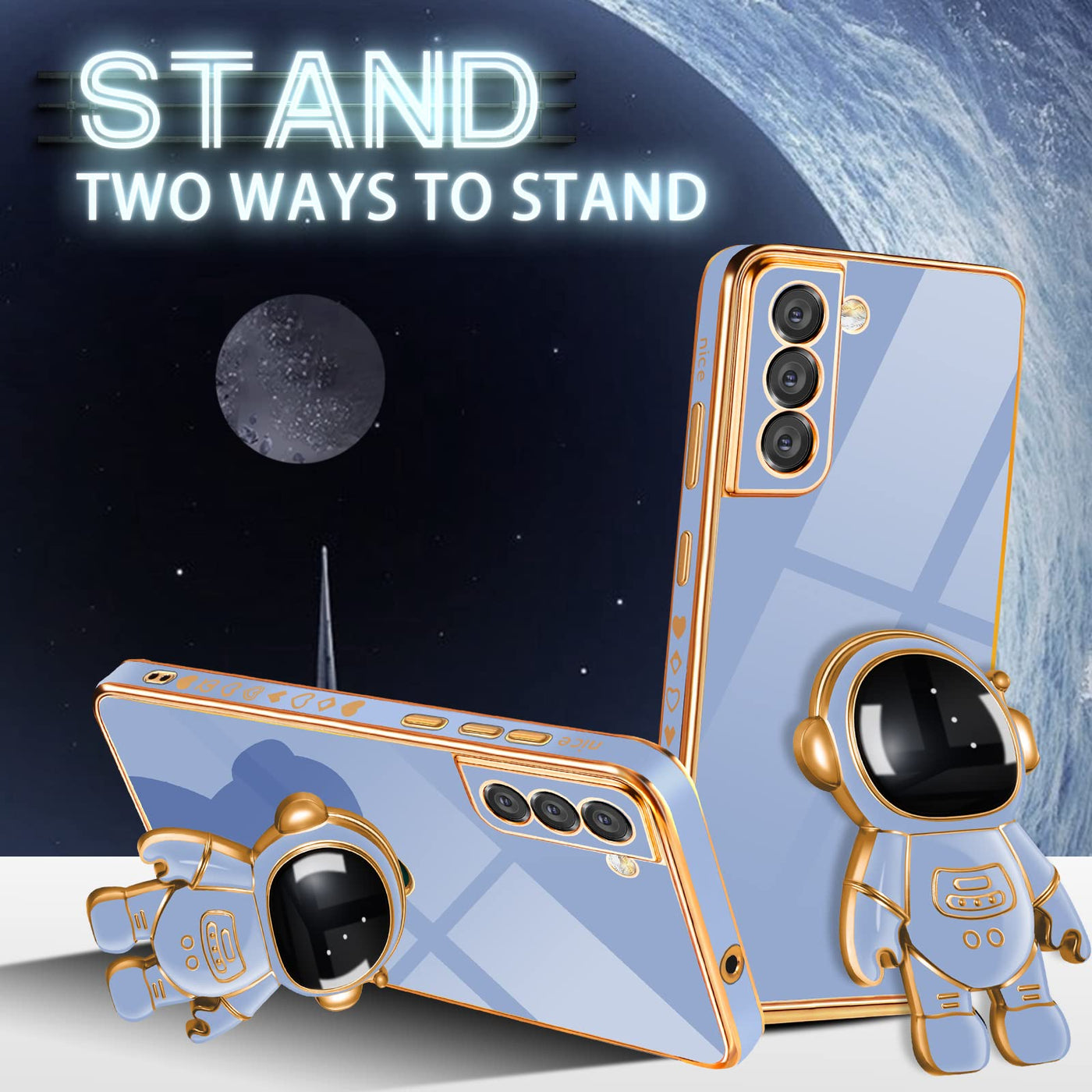 Lotadilo For Samsung Galaxy S22 Case, Love Heart Pattern 6D Gold Plating Cute Cartoon Astronaut Hidden Stand Cases For Galaxy S2