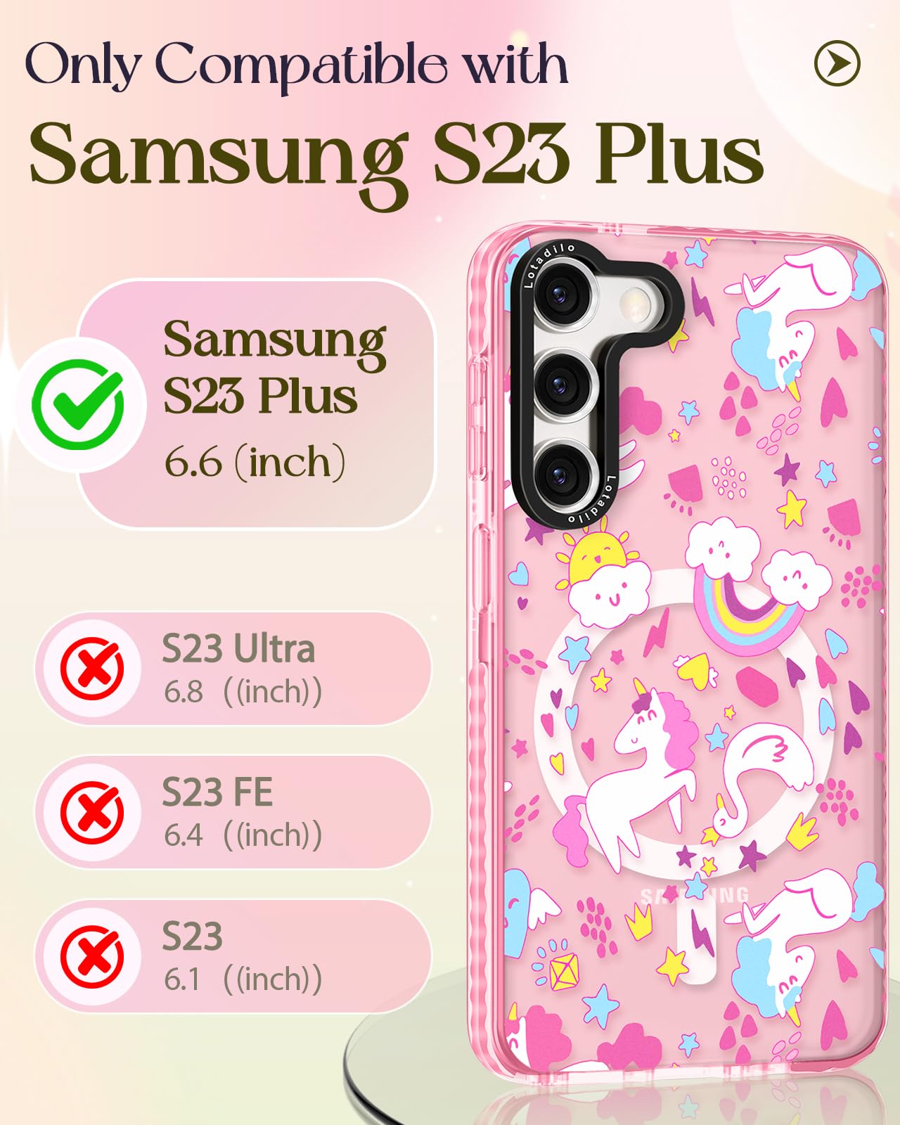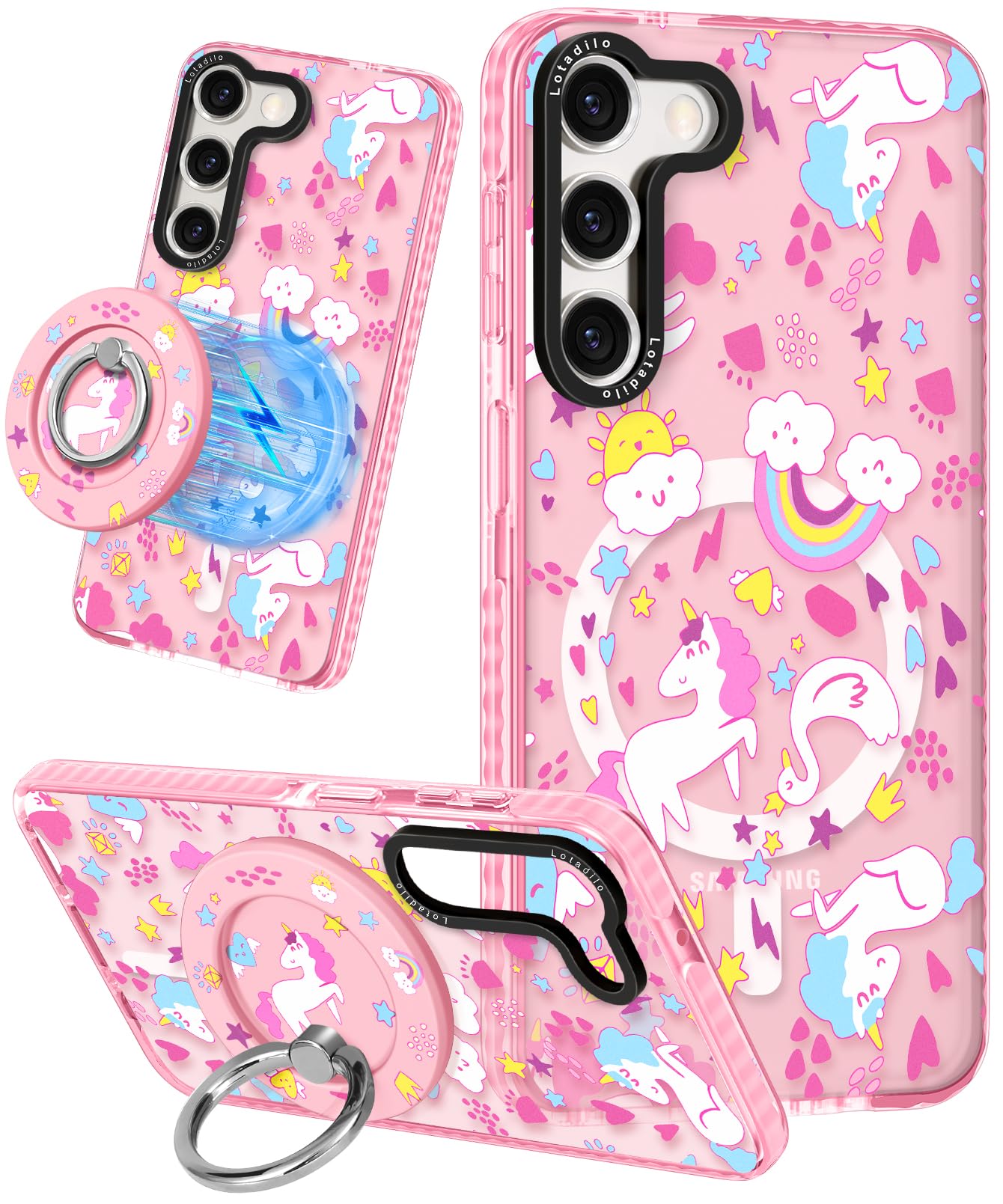 Lotadilo For Samsung Galaxy S23 Plus Case For Women - Girls Cute Design Compatible With Magsafe Magnetic Ring Holder Stand Rainb