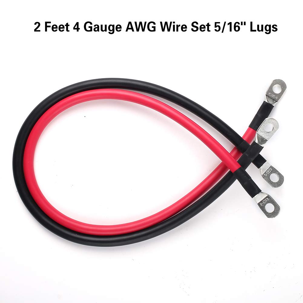 Lotfancy 4 Awg Battery Cable Set Includes One Positive And One Negative Power Inverter Cables.Each Cable Is 24Inch / 2 Feet Length. Fit 5/16 Stud. Made From 99.9% Pure Copper Stranded Conductor Wire Covered In A Durable, High Temperature Resistant Pvc Insulation, These Ofhc (Oxygen-Free High-Conductive Copper) Battery Power Cables Maximize The Performance Of Any Power Inverter. 4 Gauge Inverter Cables Are Often Used For Power Applications In Cars, Rv Trailers, Golf Carts And Small Marine Crafts, Also Great For Smaller Solar Cable Applications.