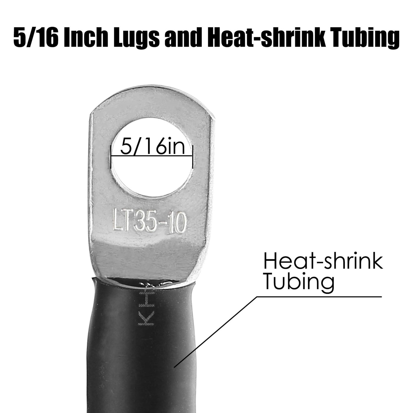 Lotfancy 4 Awg Battery Cables, 4 Gauge 2 Feet Red + 2 Feet Black Pure Copper Wires With 5/16'' Lugs Both Ends For Car Marine Sol