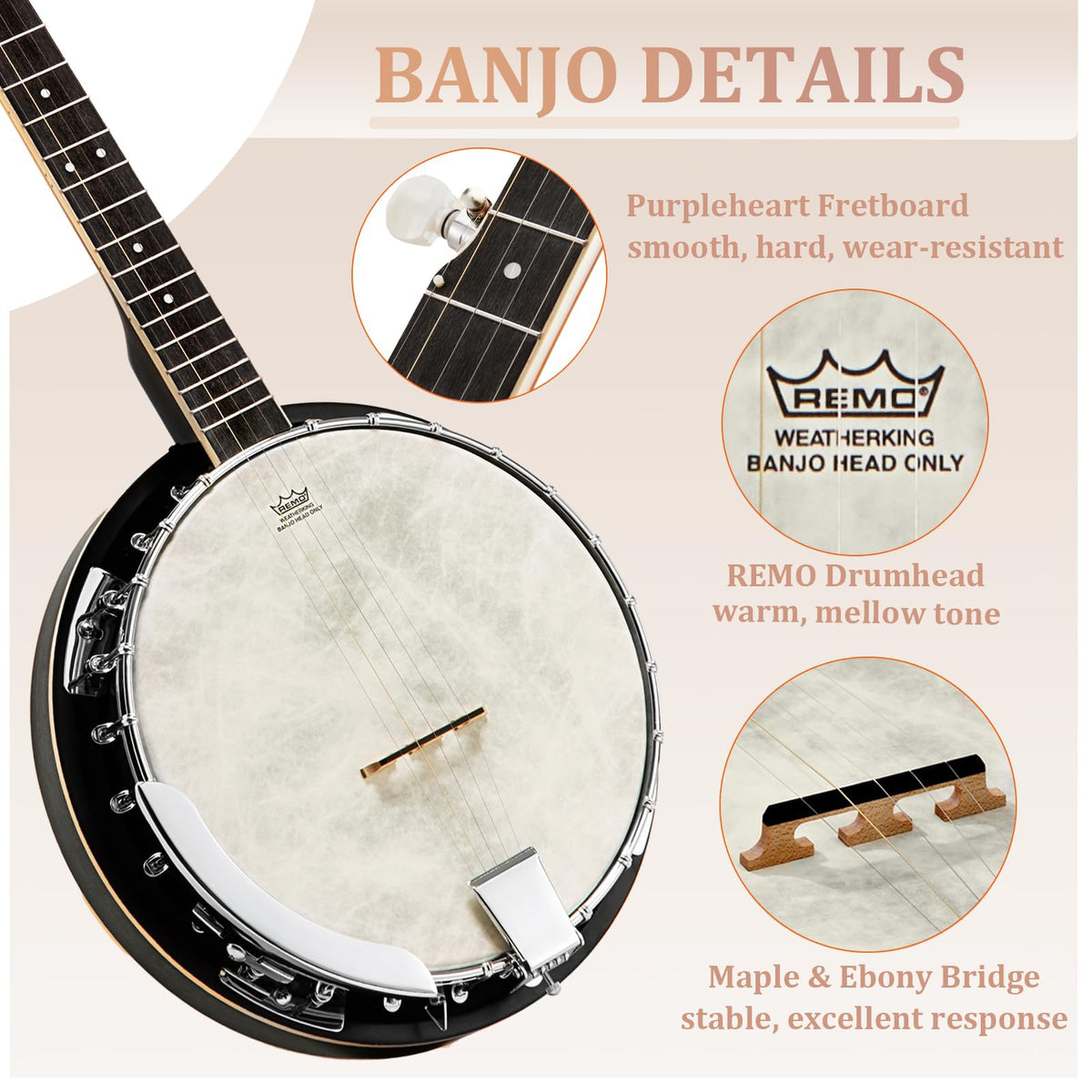 Lotkey 38-Inch 5 String Banjo, Remo Drum Head Full Size Banjos, Resonator And Open-Back Dual Styles With Beginners Manual, Banj