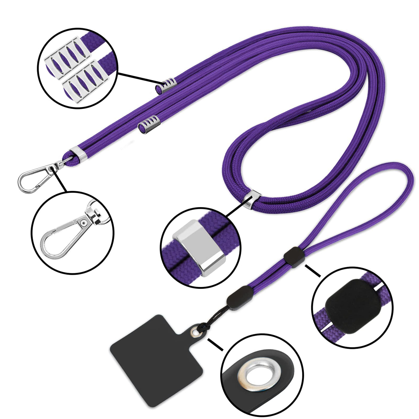 Q: What materials are used in the Cell Phone Lanyard?A: The lanyard is made from skin-friendly nylon material, ensuring comfort during use. It also features durable anti-tear connectors with metal rings for added security.