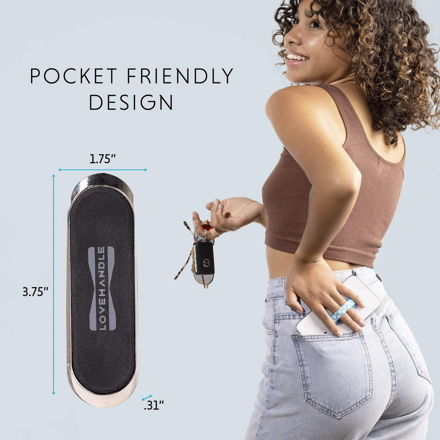 The Lovehandle Pro Mount Is The Essential Companion To The Amazing Lovehandle Pro Phone Grip. With These Two Combined, You Can Mount Your Phone Anywhere You Need A Hands-Free Display: The Car, Bathroom Mirror, Treadmill, Near Your Wall Charger, And Your Favorite Selfie Spot. The Mount Magnetically Clips To The Phone Grip And Easily Moves Between Landscape And Portrait Modes, Giving You 360 Degrees Of Seamless Rotation. Includes A Powerful 3M Adhesive That Adheres To Almost Any Surface And Can Be Removed Using Dental Floss Or Fishing Line.