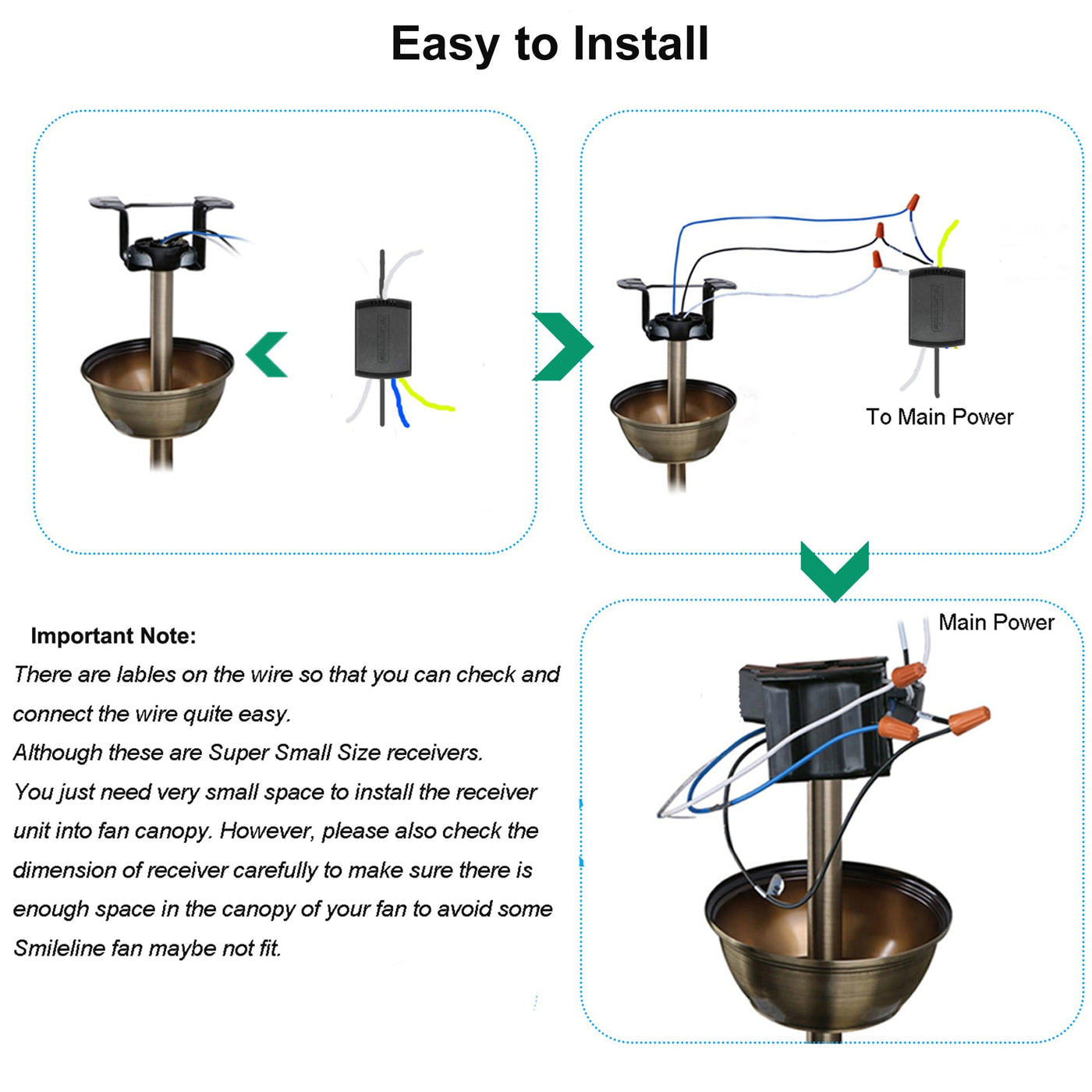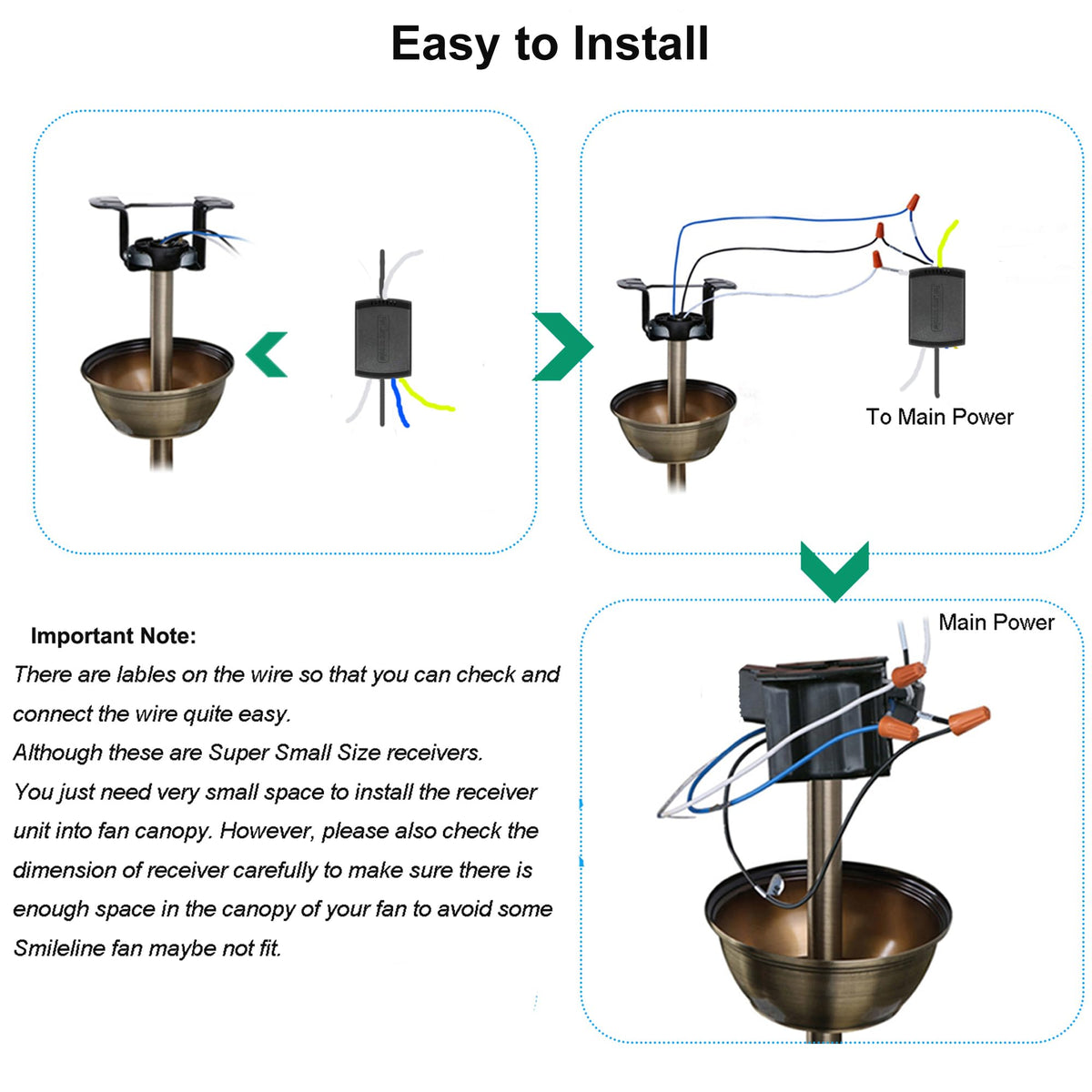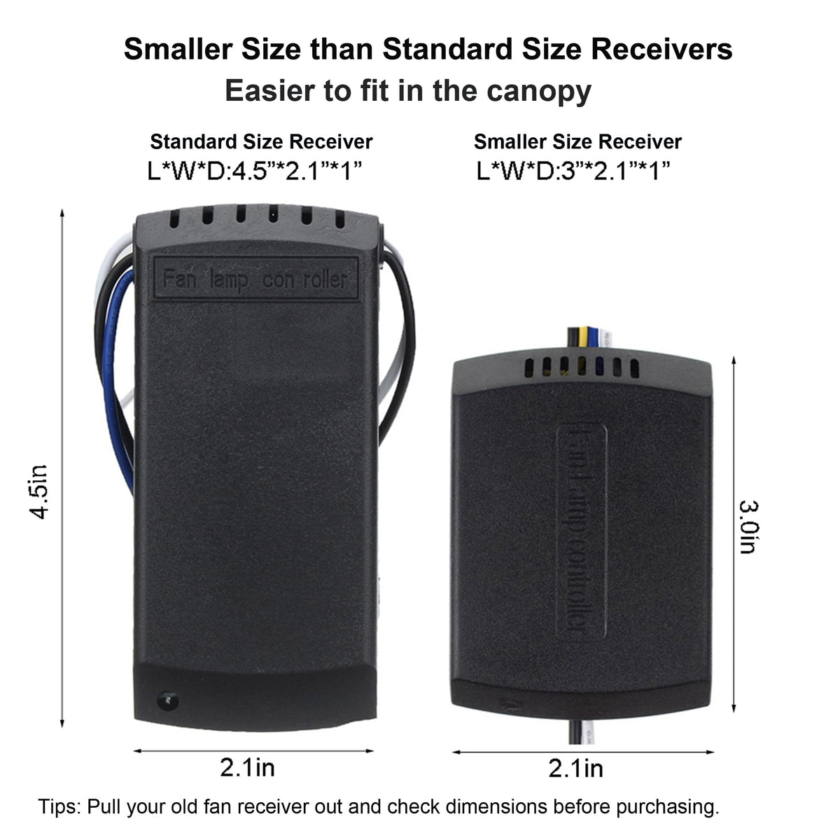 Lphumex 3 Pcs Universal Ceiling Fan Remote Control Kits, Small Size Receiver Light Timing & Speed Remote Ceiling Fan Controller