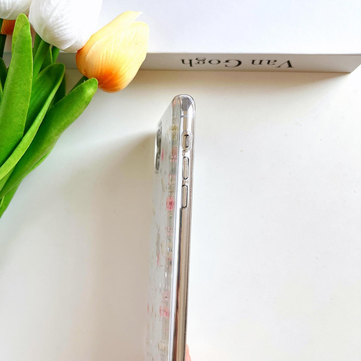 Lseeka For Iphone 11 Pro Clear Case With Pressed Real Flowers Design,Glitter Cute Pink Floral Pattern Slim Soft Tpu Protective W