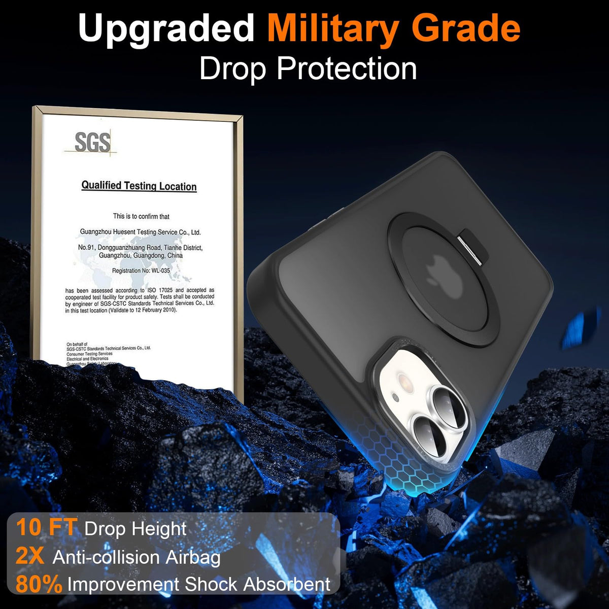 Q: How does the military-grade drop protection work?A: The case features multiple cushioning structures, including soft silicone and inner shockproof airbags, which collectively ensure protection against drops from heights of up to 8 feet, making it a reliable choice for safeguarding your device.