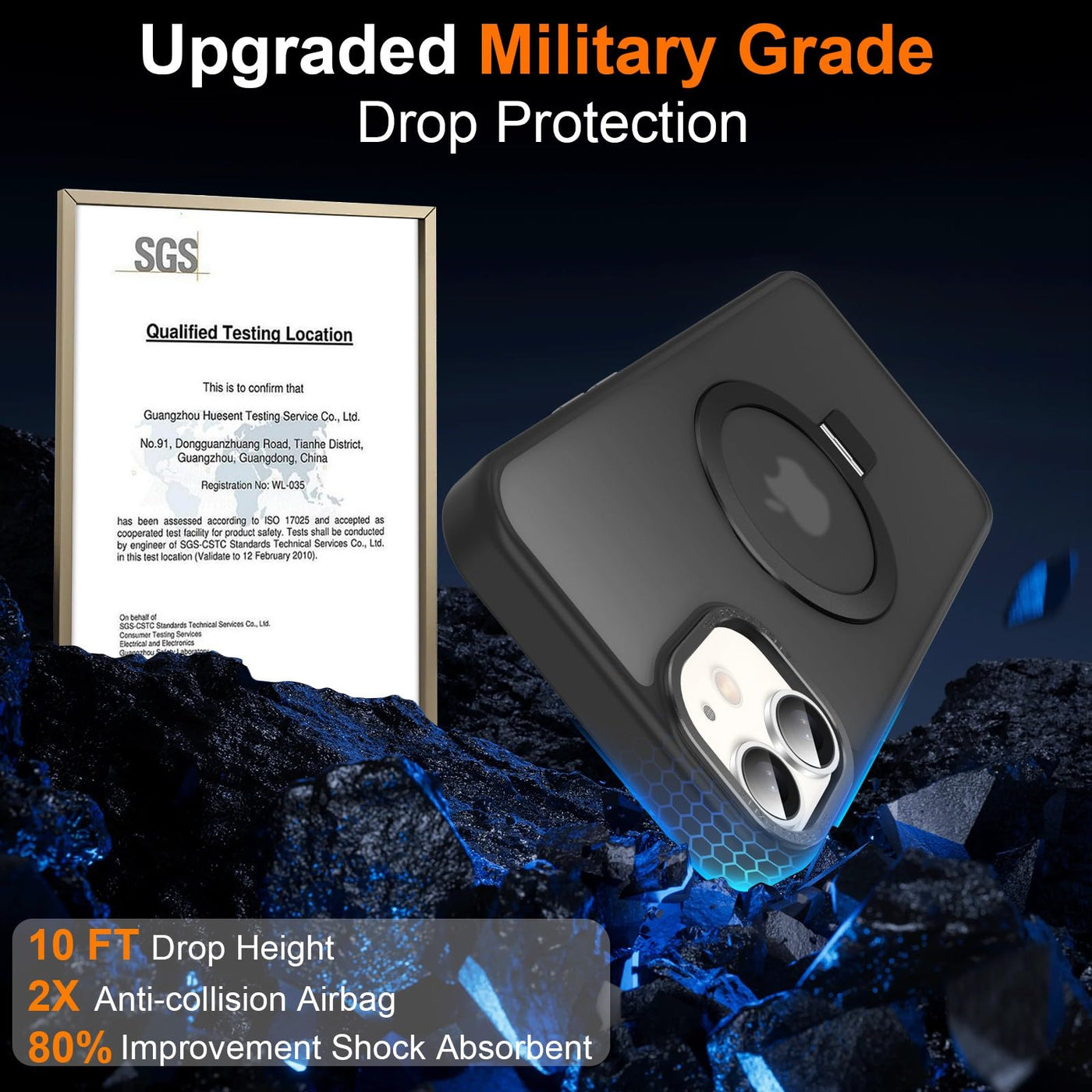 Lufanbis Magnetic For Iphone 12/12 Pro Case With Ring Stand, [10 Ft Drop Protection] [Velvety Touch] Slim Translucent Matte Back
