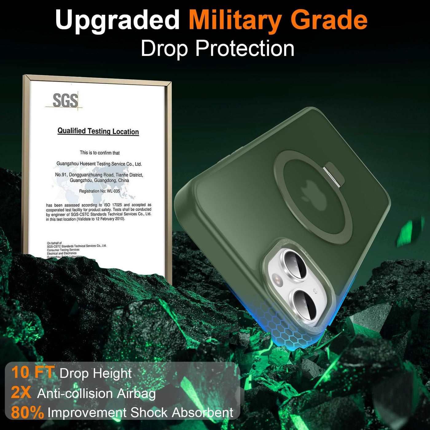 Q: What type of drop protection does the Lufanbis Magnetic iPhone 13 case offer?A: The Lufanbis Magnetic iPhone 13 case provides 8 FT military-grade drop protection, ensuring that your phone is safeguarded against fumbles and falls from significant heights.