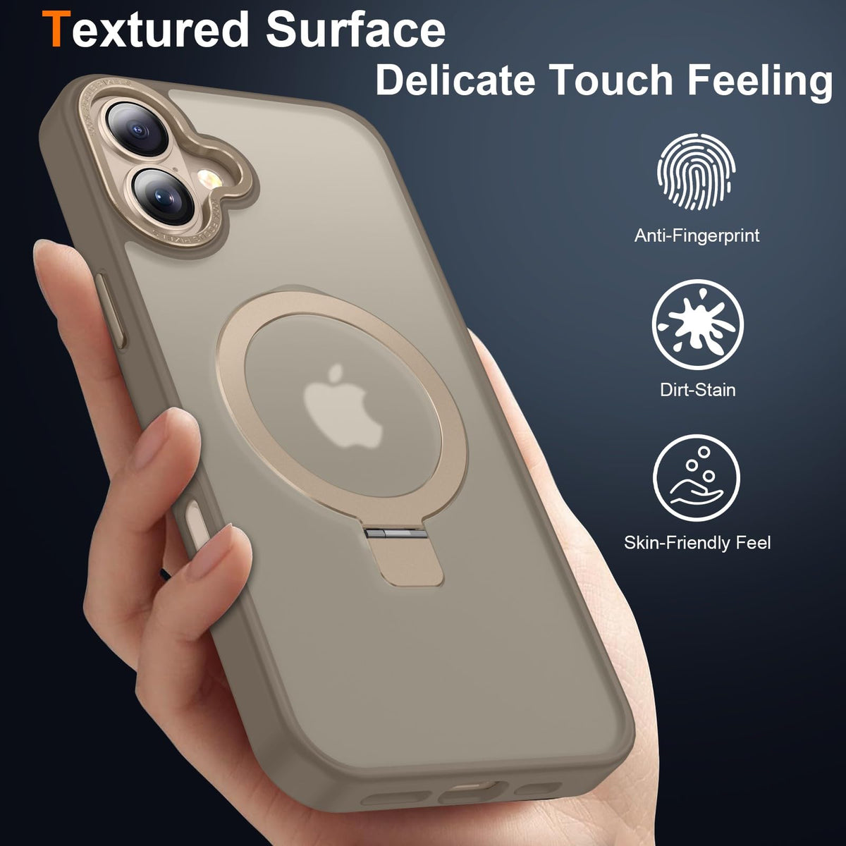 Lufanbis Magnetic For Iphone 16 Case With Ring Stand, [10 Ft Drop Protection] [Velvety Touch] Slim Translucent Matte Back Shockp