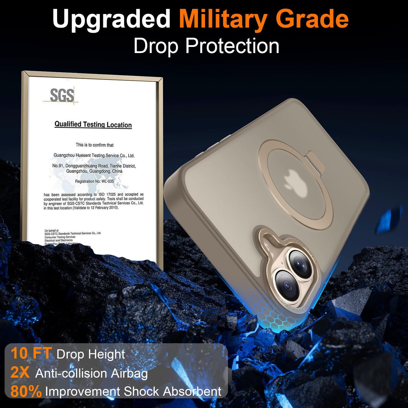 Q: What level of drop protection does this case provide?A: This case offers 8 FT military-grade drop protection, tested to withstand over 5000 drops from 8FT heights, ensuring your phone remains safe from accidental falls.