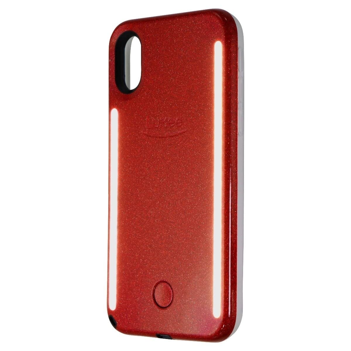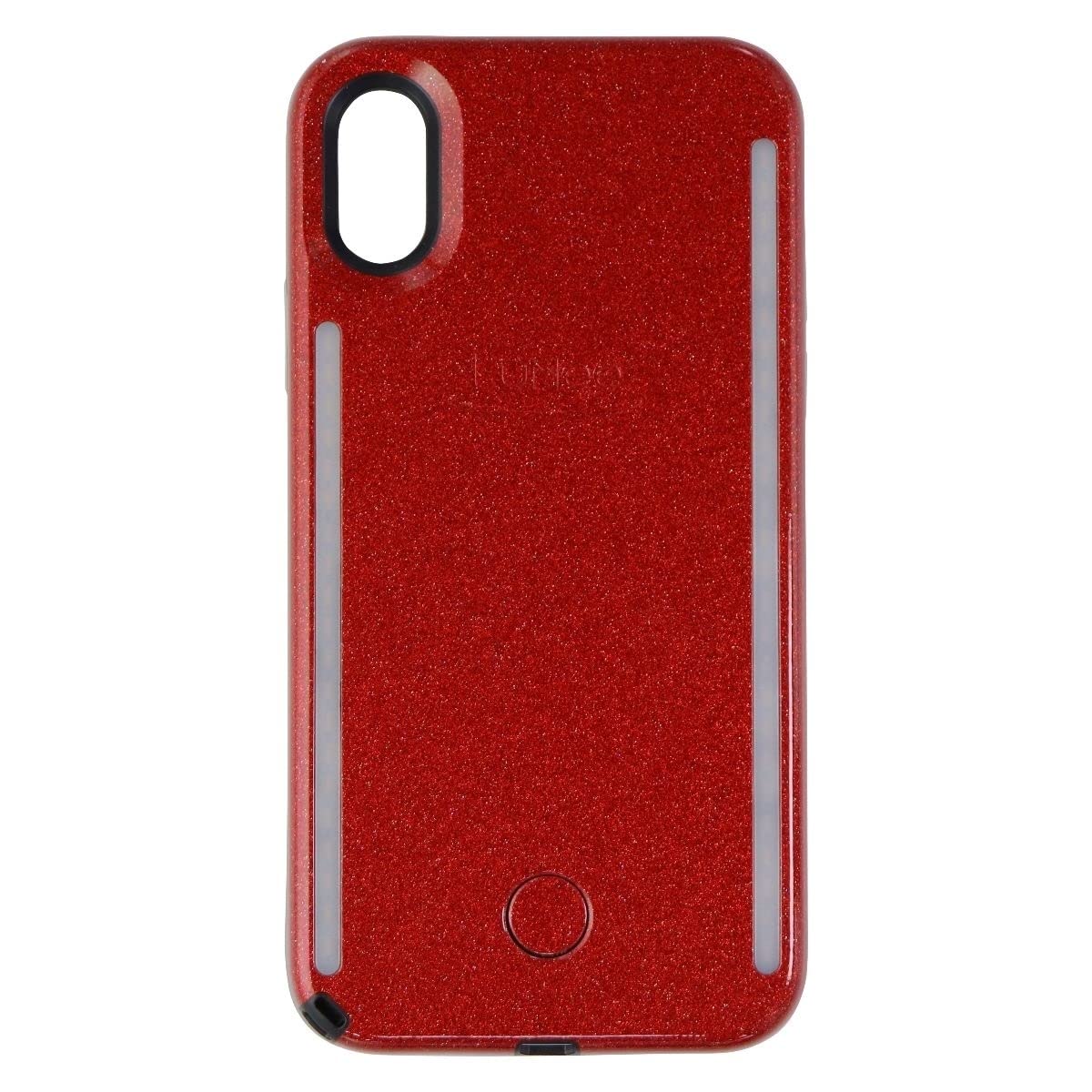 Lumee Duo Phone Case, Red Glitter | Front & Back Led Lighting, Variable Dimmer | Shock Absorption, Bumper Case, Selfie Phone Cas