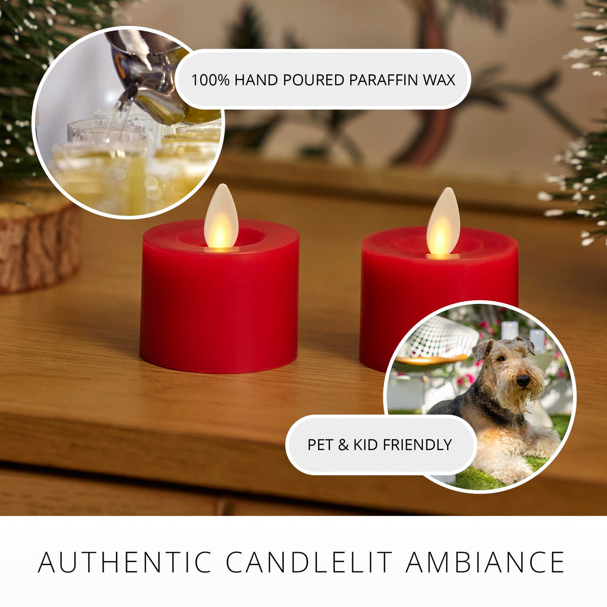Luminara 2 Pack Moving Flame Led Flameless Tealight (2'' X 2'') Battery Operated Plastic Led Flameless Tea Light (Holiday Red)