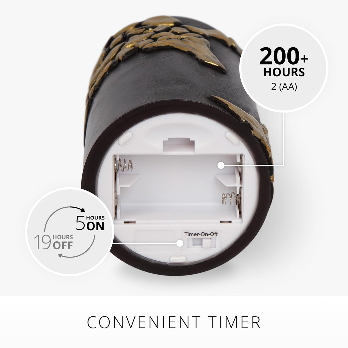 Luminara Black And Gold Skeleton Hands Flameless Led Candle, Flat Top Moving Flame Pillar, Real Unscented Wax And Timer (3.25''