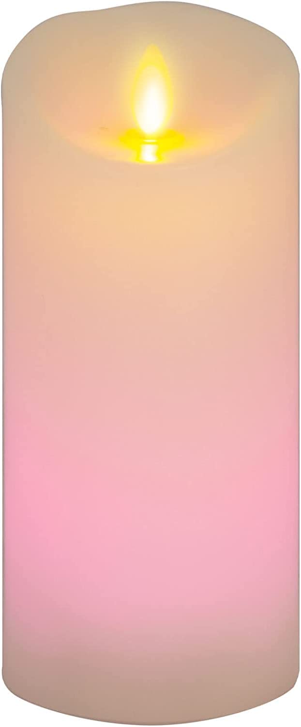 Luminara Color Changing Flameless Candle Led Moving Flame Pillar With 18 Button Remote Control, Scalloped Edge, Real Wax, Unscen
