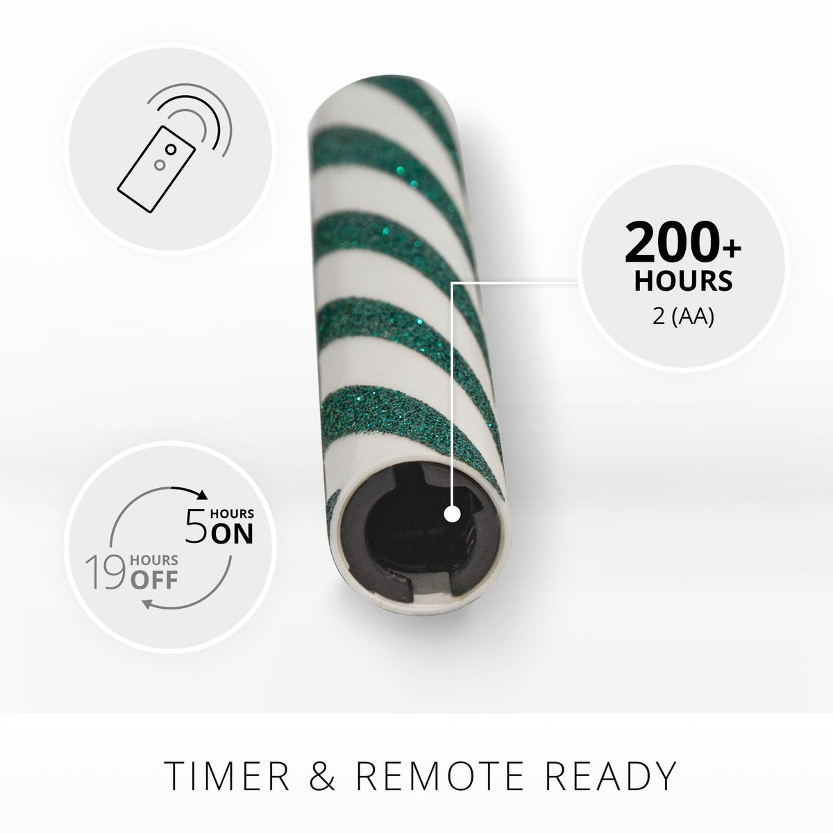 Luminara Flameless Battery Operated Taper Candle Candy Cane Green Pack Of 2 1X9.75 Led Flickering Flame Realistic Safe F