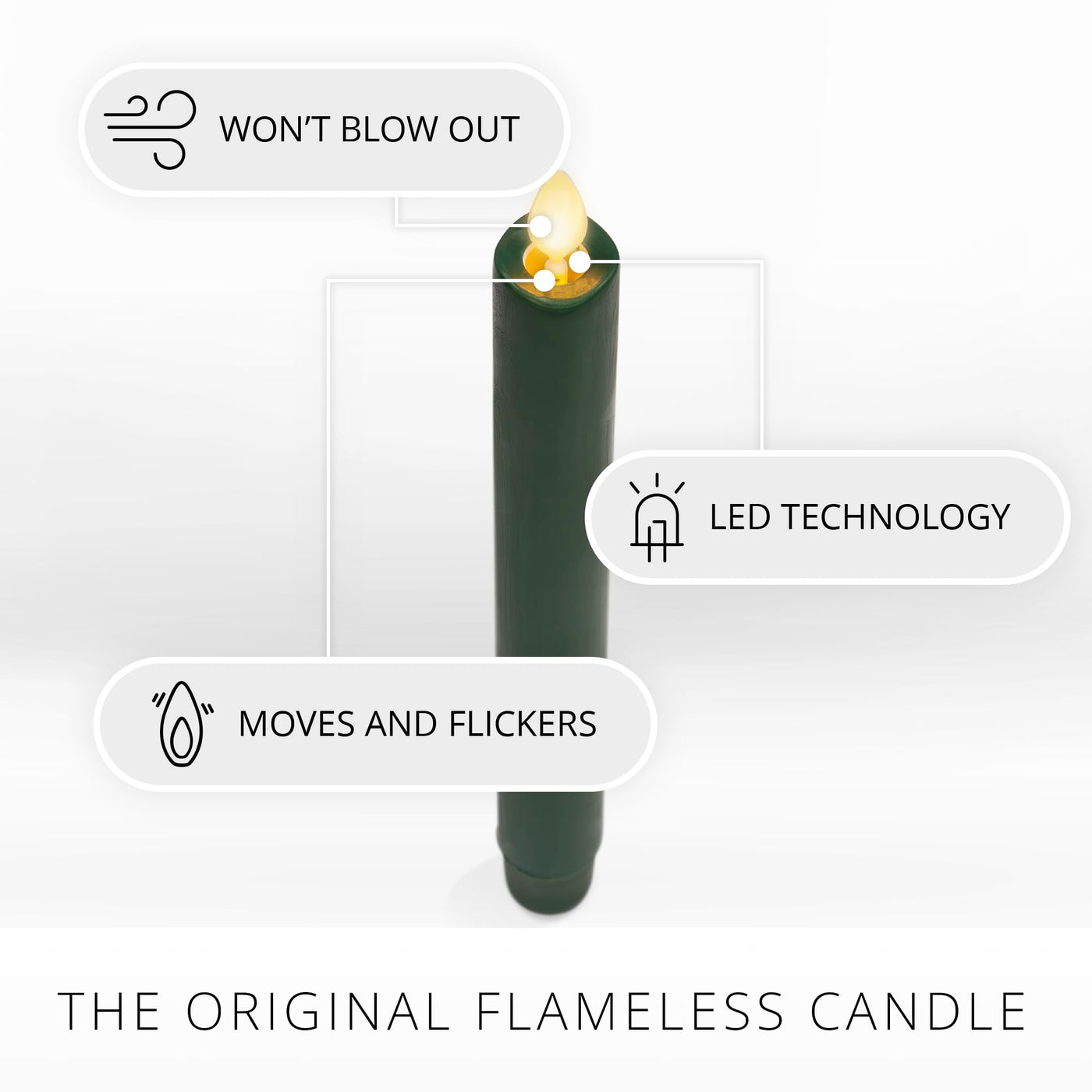 Luminara Flameless Battery Operated Taper Candle Holiday Green Pack Of 1 1X9.5 Led Flickering Flame Realistic Safe For