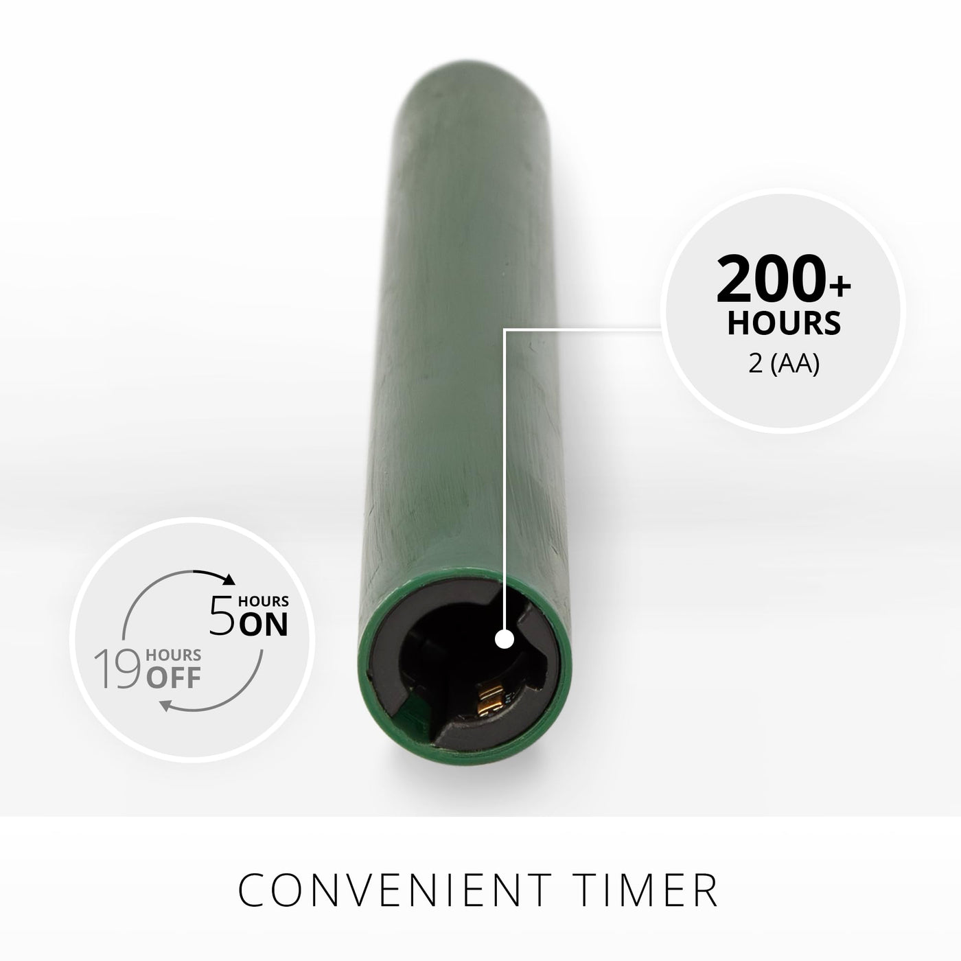 Q: How long do the batteries last in the Luminara Flameless Taper Candle?A: Each Luminara Flameless Taper Candle operates on 2 AA batteries (not included) and offers an impressive 200 hours of illumination. With an automatic timer feature that allows for 5 hours of operation followed by a 19-hour shutdown, you can enjoy worry-free lighting for extended periods.