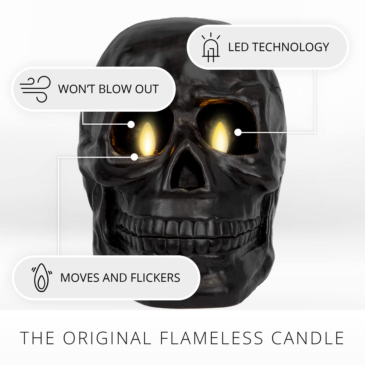 Luminara Flameless Dual Moving Flame Large Skeleton Skull Figural (5.85'' X 7.5'') Real Wax Led Candle, Unscented, Timer Black