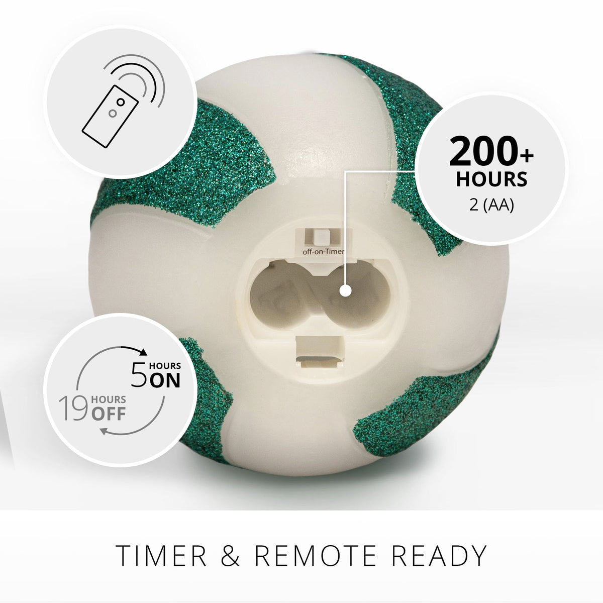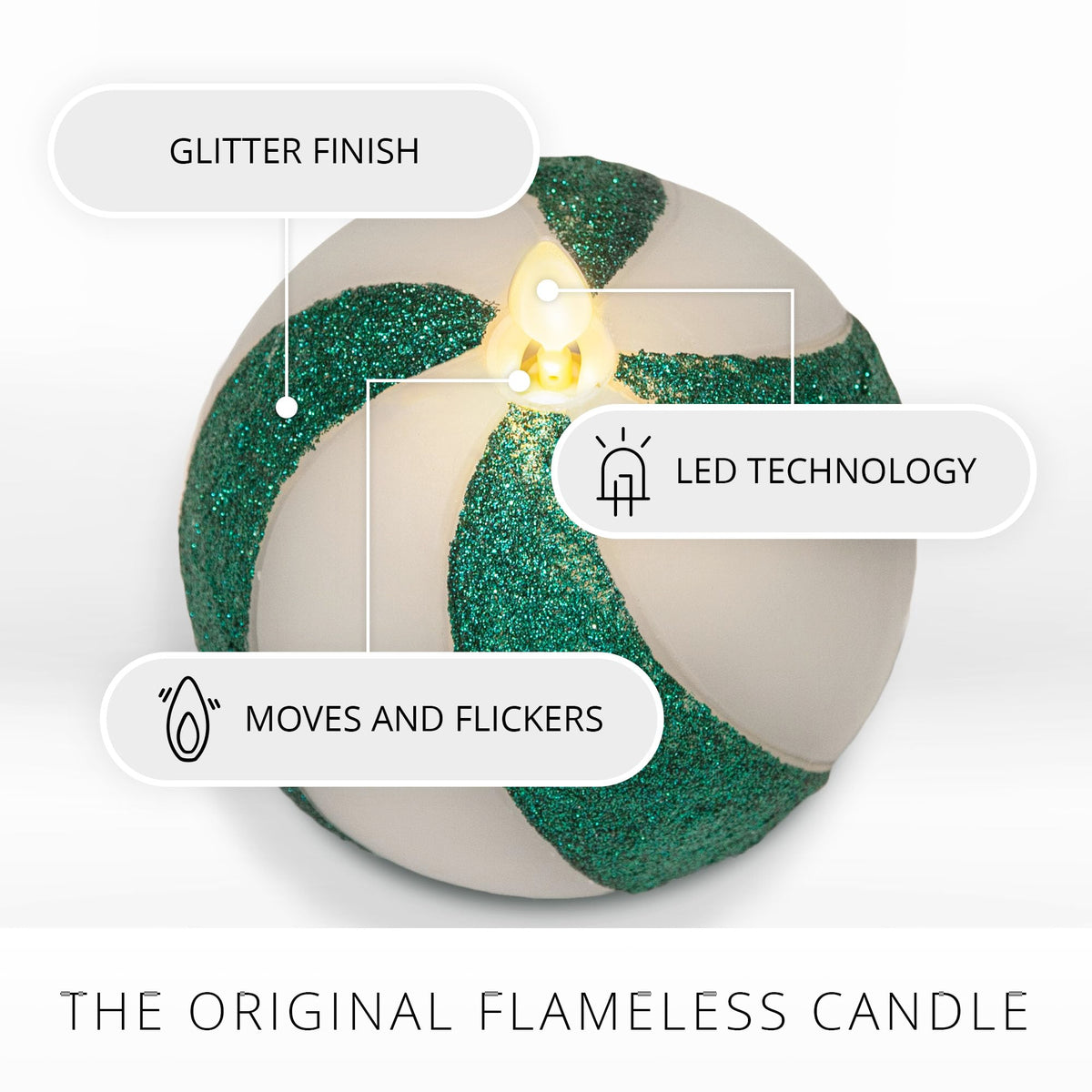 Luminara Flameless Holiday Crystal Beads Glitter Sphere Candle Candy Cane Green Pack Of 1 4X4.25 Auto Timer Built In 5 Ho