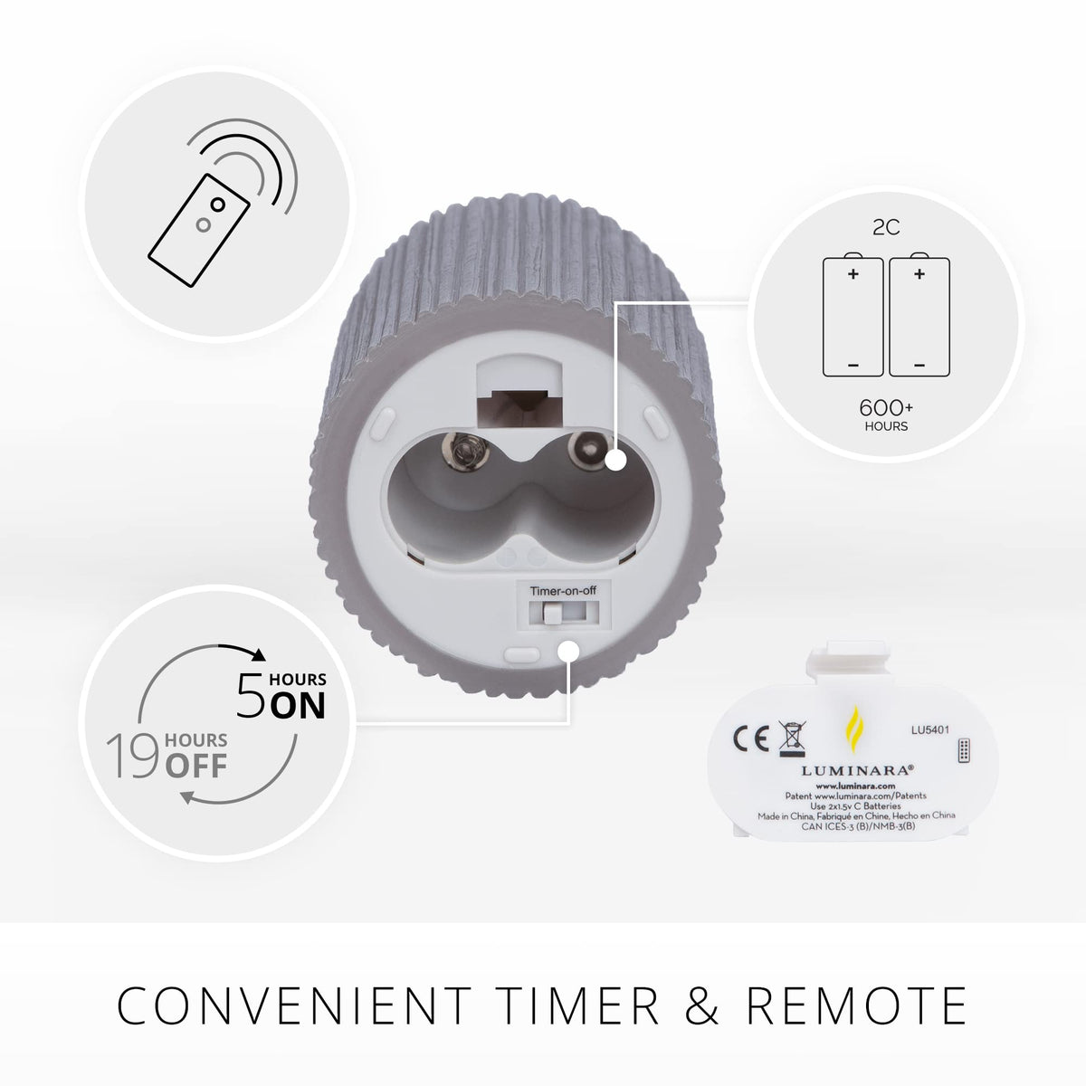 Treat Yourself With The Luxurious Metallic Grey Flameless Candle Pillar That Glitters In The Realistic Moving Flame. An Authentic Moving Flame-Effect Complements The Recessed Top To Recreate The Look Of A Traditional Burning Candle. Paraffin Wax Holds Up To Daily Use, Illuminating Your Home With A Flickering Flame-Effect For Years To Come. Product Features Size: 3.25'' Diameter; 4.5'' Heights Color: Metallic Grey Edge: Recessed Top Form: Pillar Scent: Unscented Finish: Ribbed Material: Paraffin Wax Use: Indoor Led Technology: Moving Flame On/Off/Timer Operation: Switch On Bottom Of Candle Timer: 5 Hours On/19 Hours Off Remote Ready: Yes Remote Included: No, Sold Separately Batteries Required: 2 C (Not Included) Battery Runtime: 600+ Hours