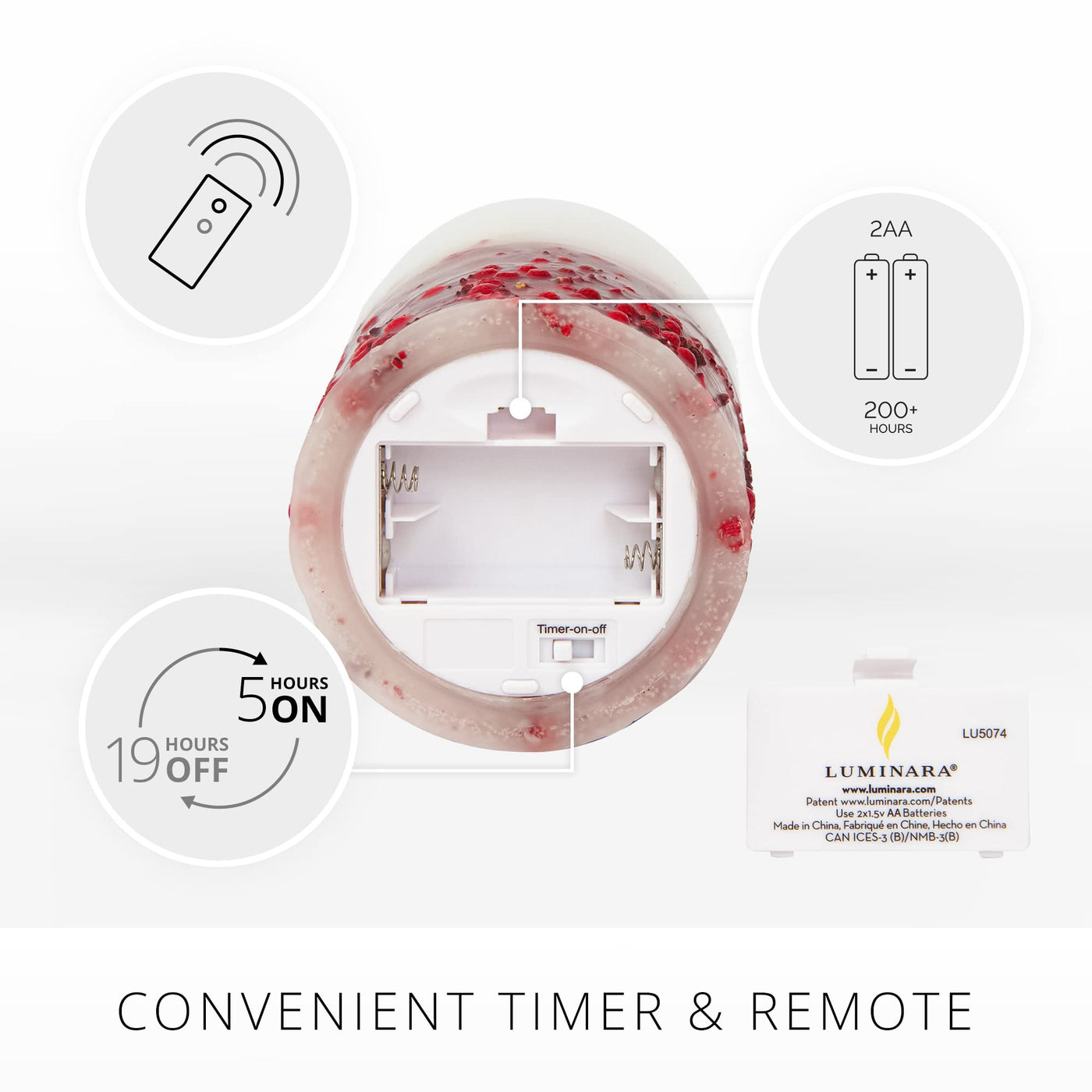 With Bright Red Berries Embedded Into The Paraffin Wax, The Red Berries Flameless Candle Pillar Is The Highlight Of Your Autumn And Winter Decor. Real Flame-Effect Technology Flickers Across The Wax Like The Sun Shining On The Fallen Snow. Display This Candle With Christmas Wreaths, Silver Plates, Bronze Cups, And Artificial Plants For An Old-Fashioned Holiday. Product Features Size: 3.5'' Diameter; Available In 4.5'' And 6.5'' Heights Color: Red Berries Edge: Recessed Top Form: Pillar Scent: Unscented Finish: Smooth Material: Paraffin Wax Use: Indoor Led Technology: Real Flame-Effect On/Off/Timer Operation: Switch On Bottom Of Candle Timer: 5 Hours On/19 Hours Off Remote Ready: Yes Remote Included: No, Sold Separately Batteries Required: 2 C (Not Included) Battery Runtime: 600 Hours