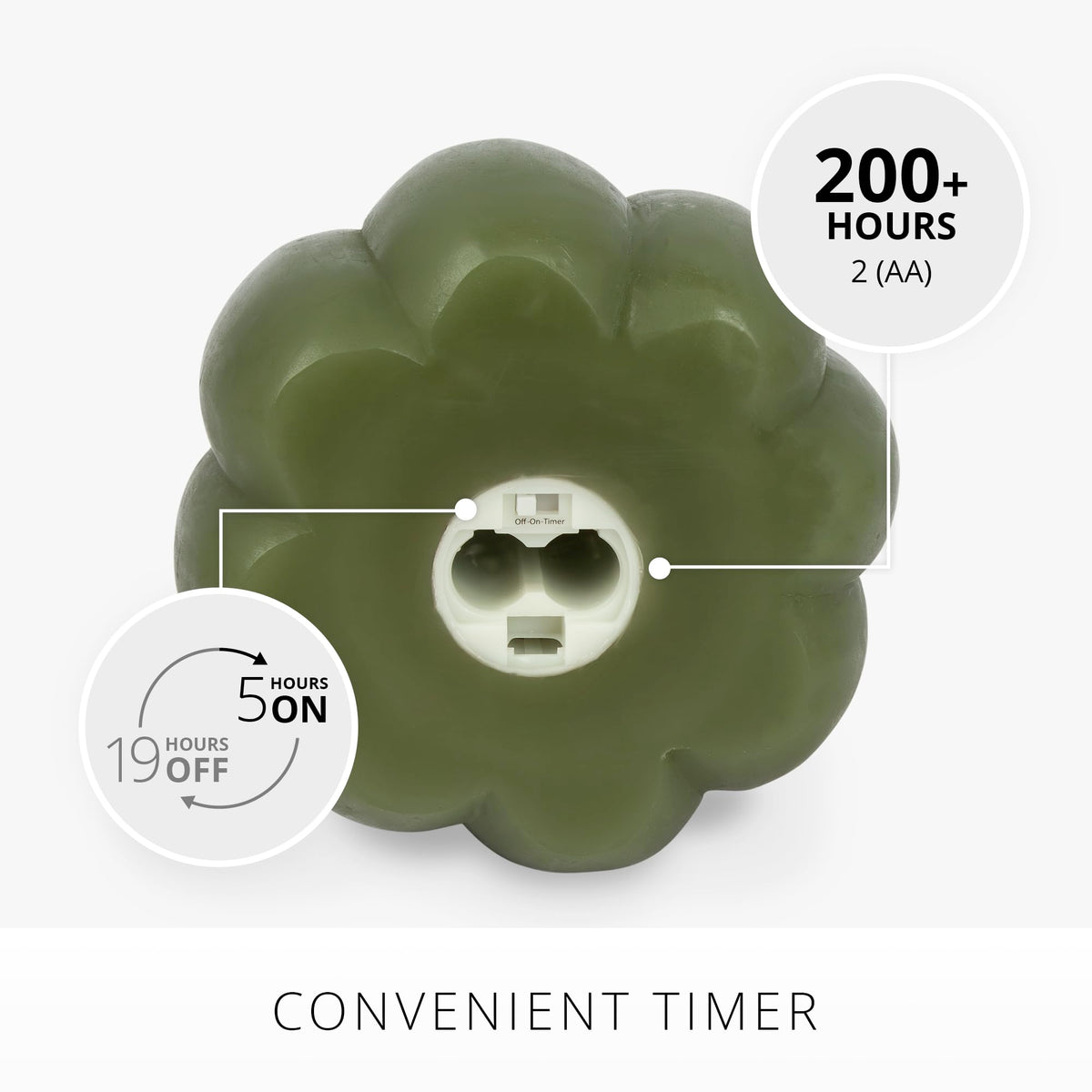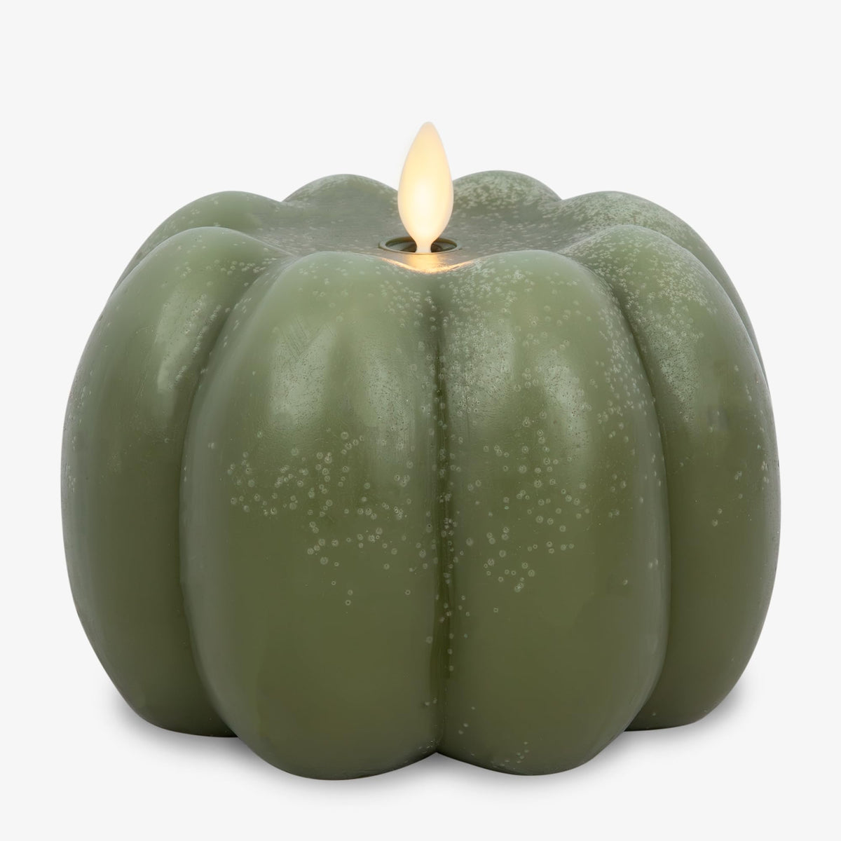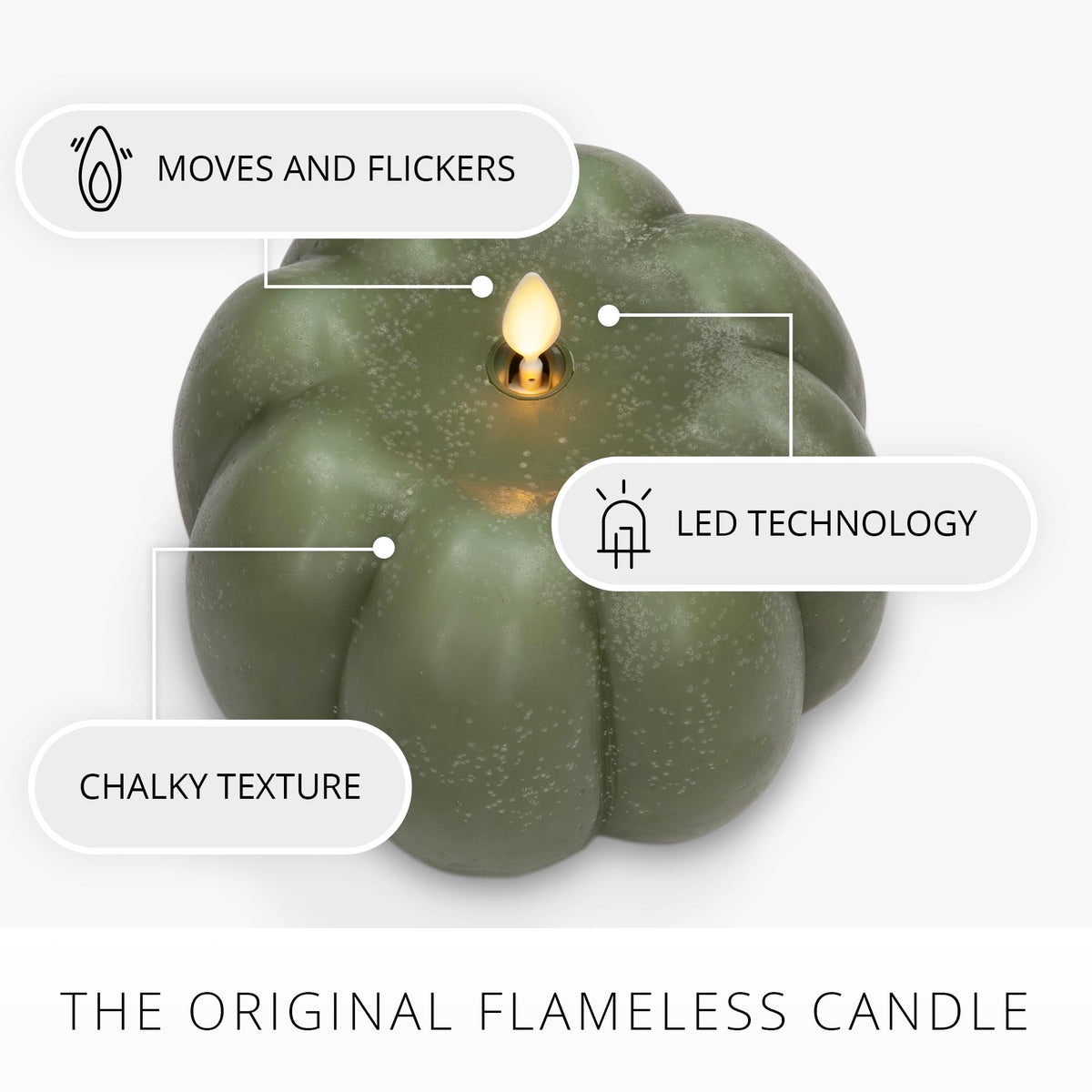 Our Loden Green Chalky Pumpkin Provides A Warm Contrast Of Color To The Traditional Orange And Red Hues Of The Fall Season. The Chalky Finish Adds Texture And Depth, Creating An Ashen Green Tone That Beautifully Complements The Warm D Cor Of The Autumn Months. Equipped With Authentic Moving-Flame Technology, The Loden Green Chalky Pumpkin Flameless Candle Will Add An Inviting Glow To Any Of Your Fall Festivities.