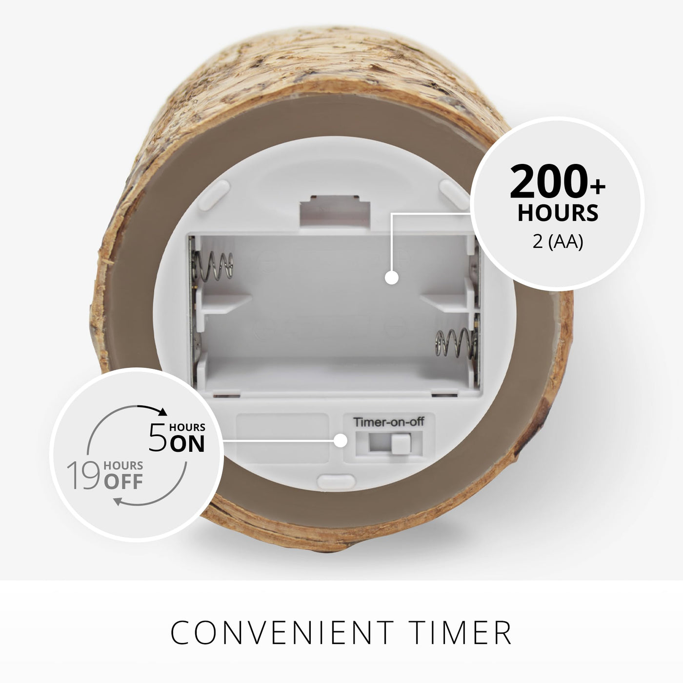 At First Glance, The Real Birch Wood Flameless Candle Pillar Looks Like A Wood Log With A Fire Flickering On The Wick. In Fact, We Crafted This Candle With Paraffin Wax And Patented Moving Flame Technology To Create A Natural Appearance Without The Fire Hazard. Arrange This Rustic Candle Next To Artificial Plants And Antique Decor. Product Features Size: 3.5'' X 6.5'' Color: Birch Edge: Recessed Top Form: Pillar Scent: Unscented Finish: Birch Wood Material: Paraffin Wax Use: Indoor Led Technology: Real Flame-Effect On/Off/Timer Operation: Switch On The Bottom Of Candle Timer: 5 Hours On/19 Hours Off Remote Ready: Yes Remote Included: No Remote Features: N/A Batteries Required: 2 Aa (Not Included) Battery Runtime: 200+ Hours