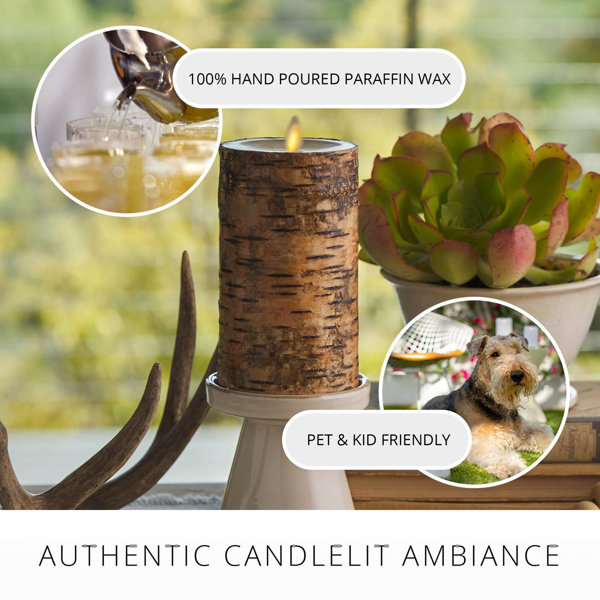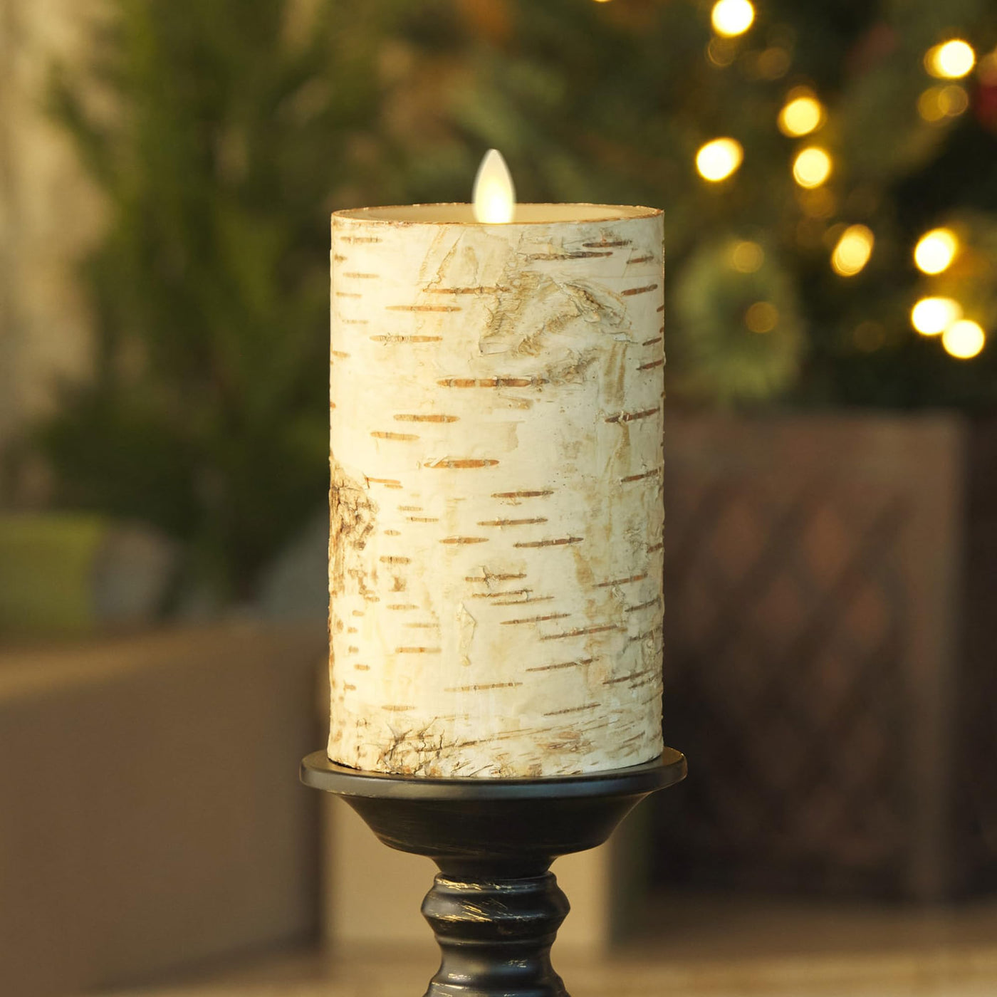Luminara Real Birch Bark Wrapped Flameless Led Candle, 3.5'' X 6.5'', Battery Operated Moving Flame Pillar Light With Timer Na