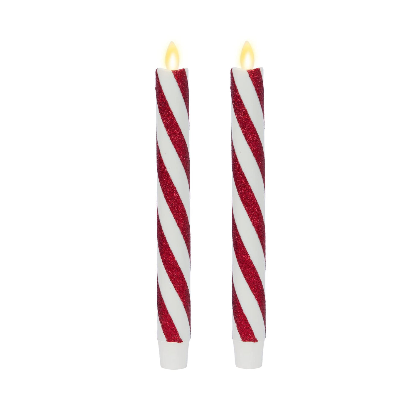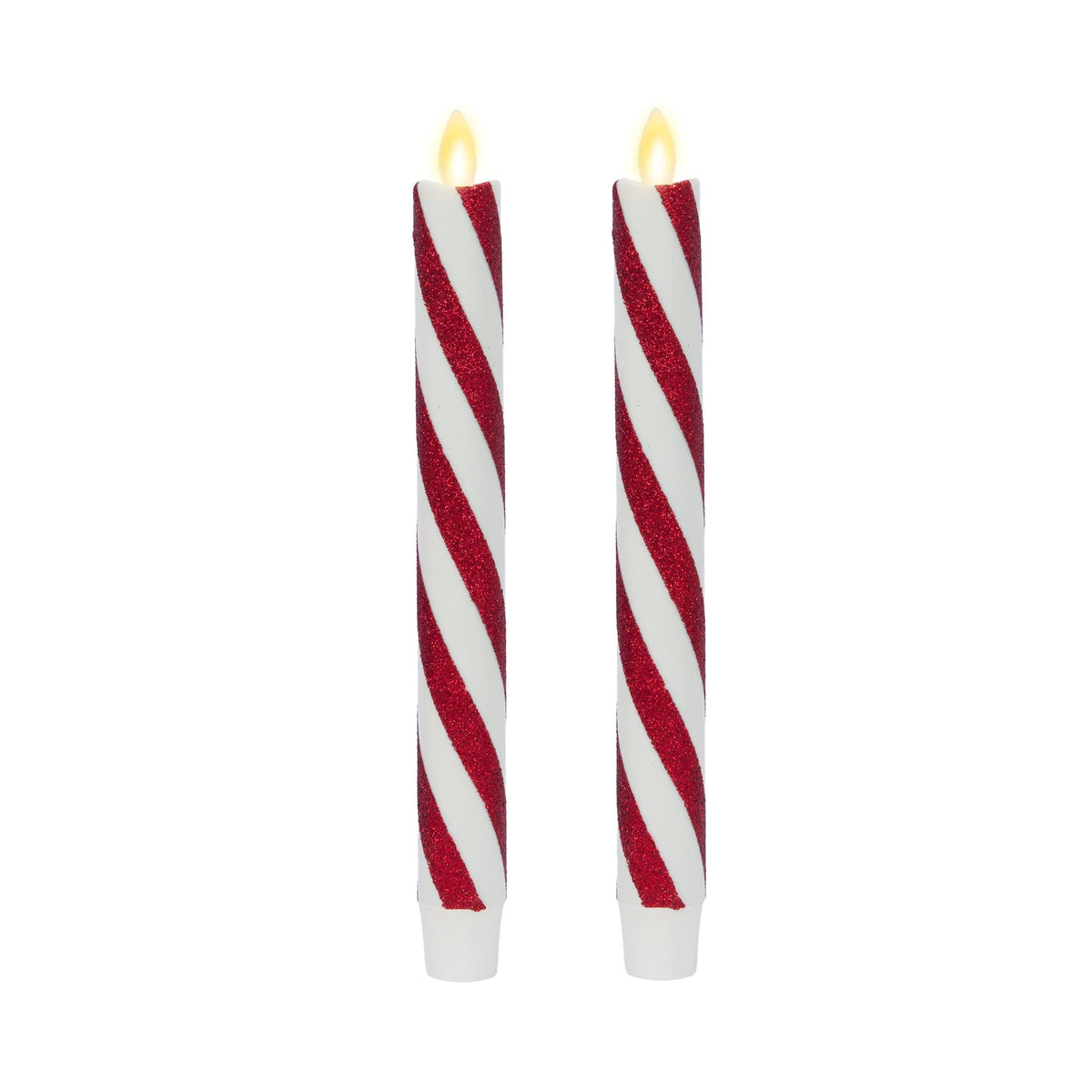 Luminara Set Of 2 Moving Flame Led Taper (1X9.75), Flameless Candle, Melted Edge, Smooth Wax, Unscented (Candy Cane Red)