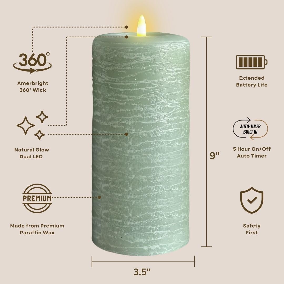 Lumipur Signature Natural Glow Flickering Flameless Led Wax Pillar Candle (3.5'' X 9'', Sage Green)
