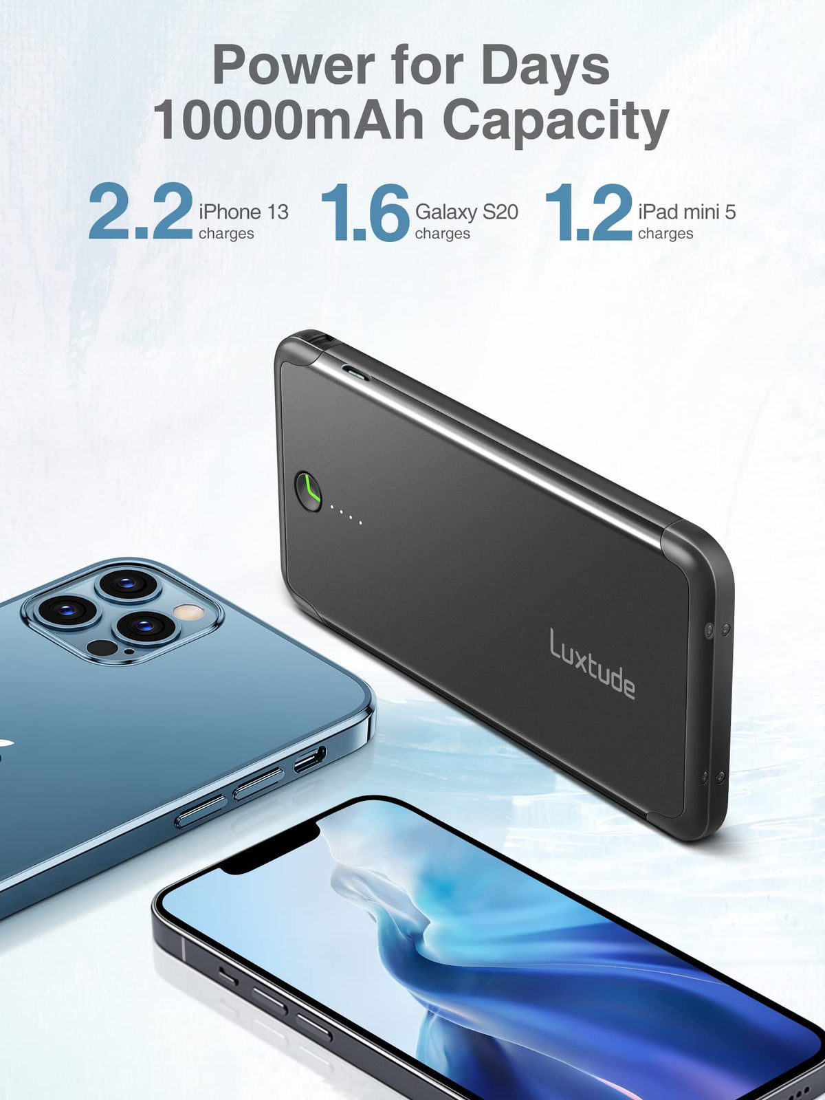 Luxtude 10000Mah Portable Charger For Iphone Built-In Lightning Cable, Mfi Apple Certified Slim Power Bank Portable Phone Charger, Fast Charging External Battery Pack For Iphone, Samsung, Ipad Etc