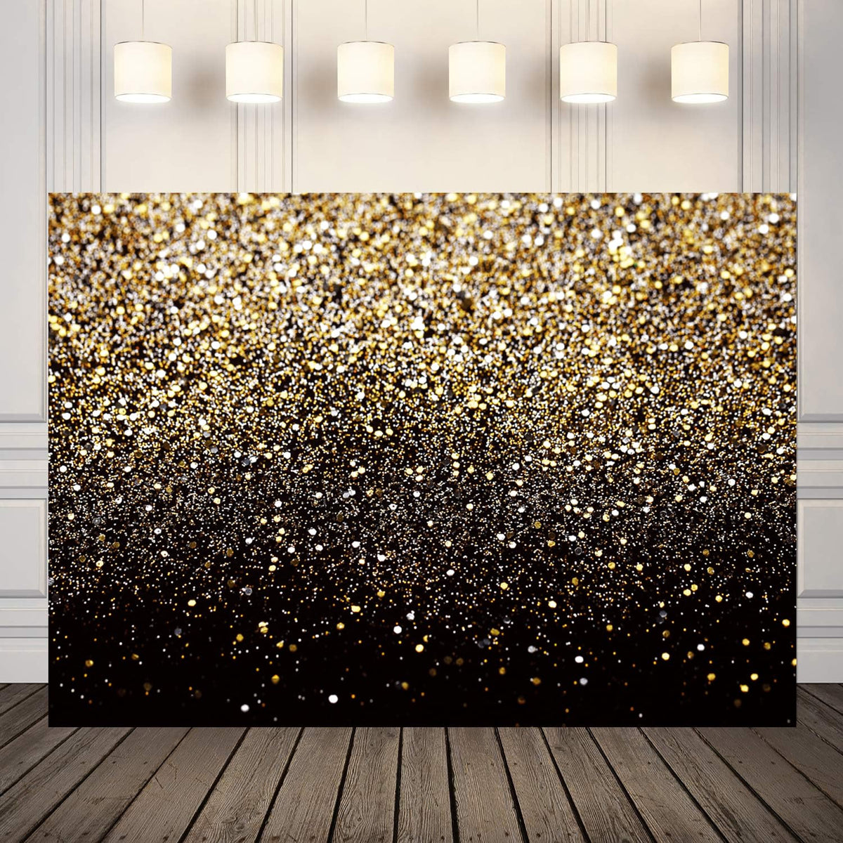 Q: What is the size of the LYCGS Black and Gold Backdrop?A: The LYCGS Black and Gold Backdrop measures 7 feet wide by 5 feet high (210cm x 150cm), making it ideal for various events such as birthdays, weddings, and graduations.