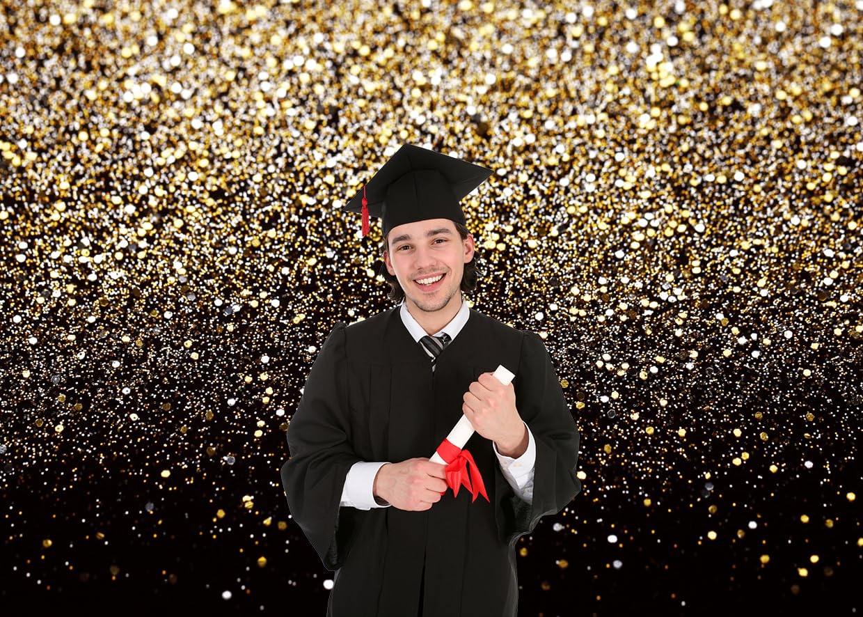 Lycgs 7X5Ft Black And Gold Backdrop Birthday Backdrop Gold Spots Bokeh Backdrop Wedding Prom Graduation Photography Background H