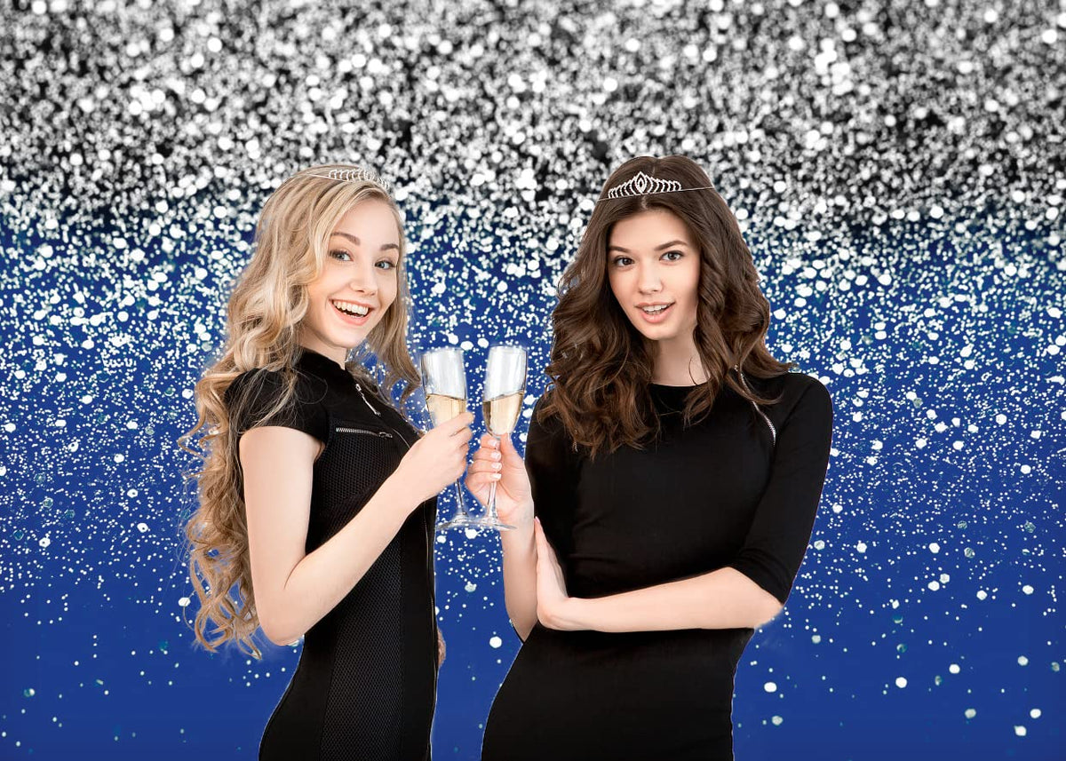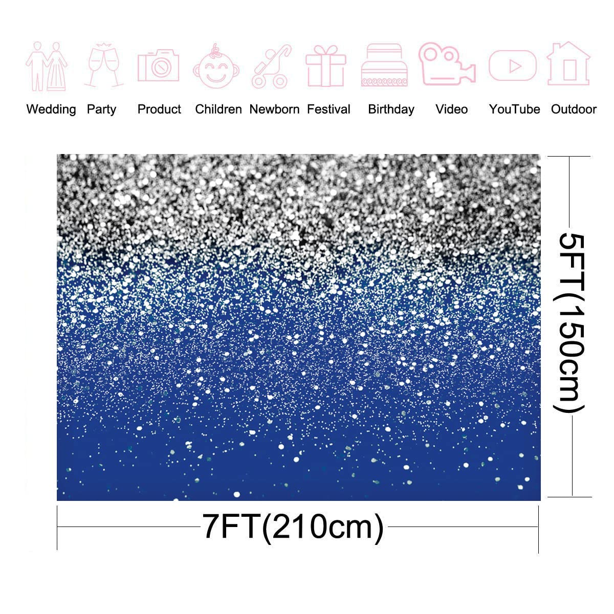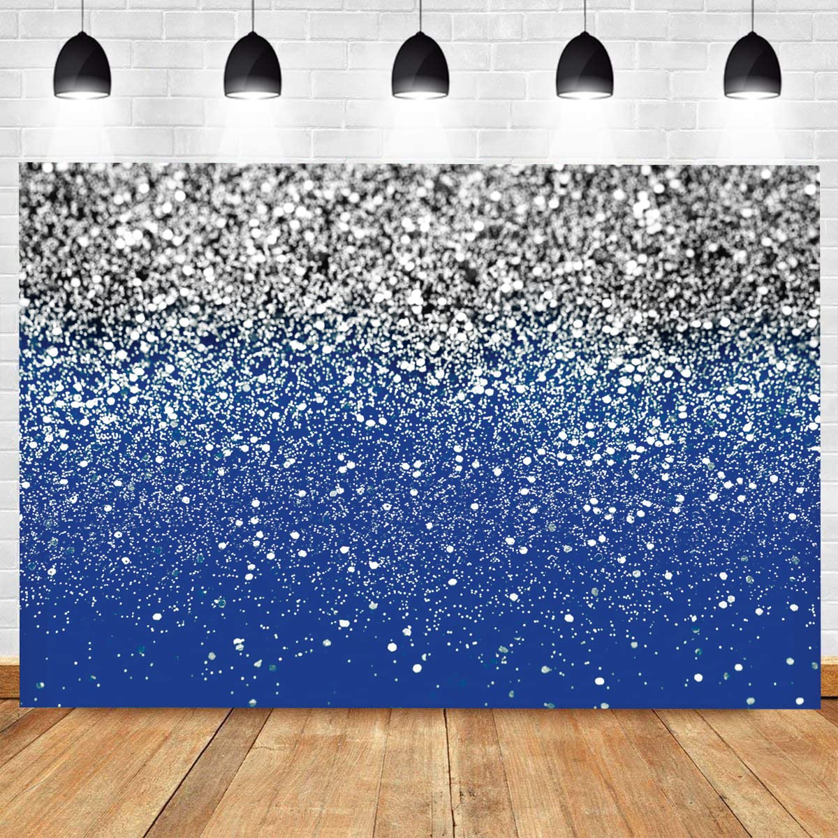 Lycgs 7X5Ft Blue And Silver Backdrop Birthday Backdrop Silver Spots Bokeh Backdrop Wedding Prom Graduation Photography Backgroun
