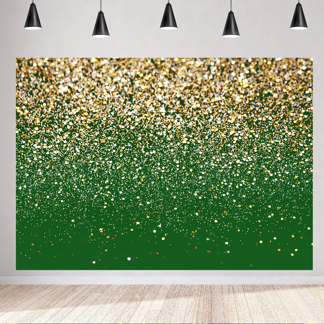 Lycgs 7X5Ft Green And Gold Backdrop Birthday Backdrop Gold Spots Bokeh Backdrop Wedding Prom Graduation Photography Background H