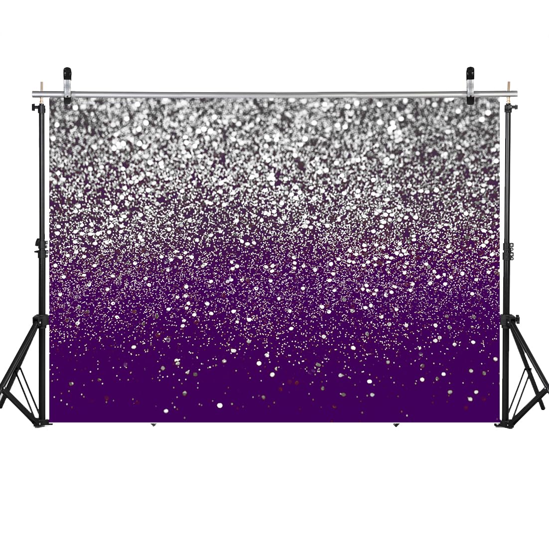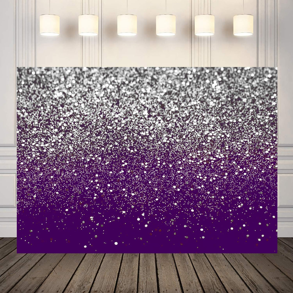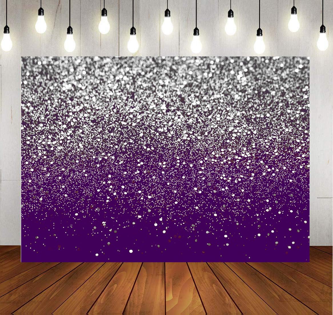 Q: What are the dimensions of the LYCGS Purple Bokeh Backdrop?A: The LYCGS Purple Bokeh Backdrop measures 7 feet in width and 5 feet in height (210cm x 150cm), making it suitable for various occasions such as birthdays, weddings, and graduations.