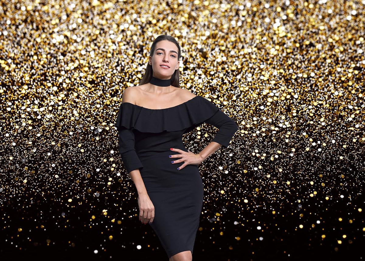 Lycgs 8X6Ft Black And Gold Backdrop Birthday Backdrop Gold Spots Bokeh Backdrop Wedding Prom Graduation Photography Background H