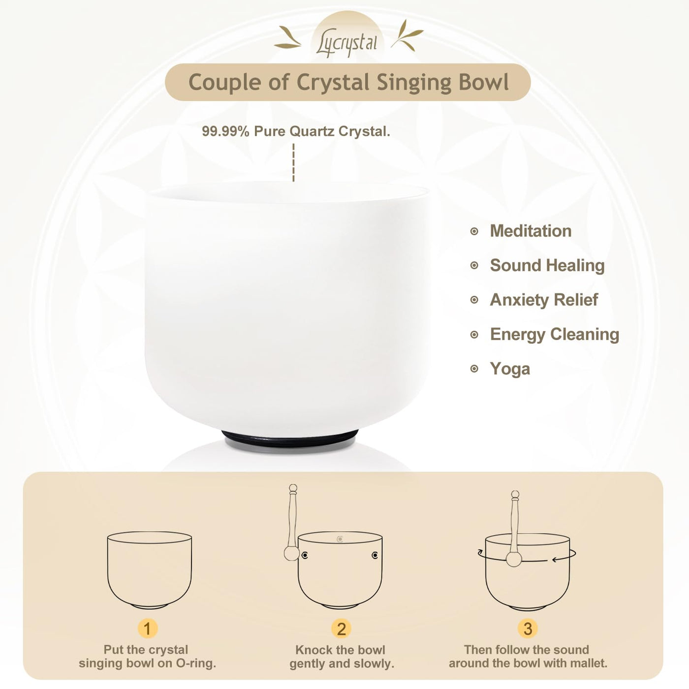 Lycrystal Couple Of 2 Pcs Crystal Singing Bowl Set, 8'' F Note Heart Chakra And 10'' C Note Root Chakra, Sound Bowl Meditation S