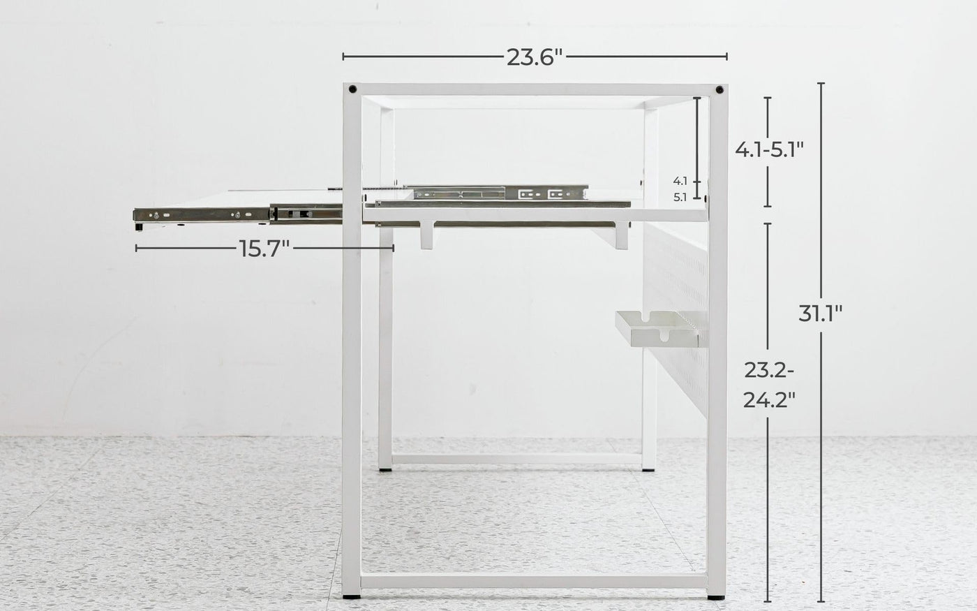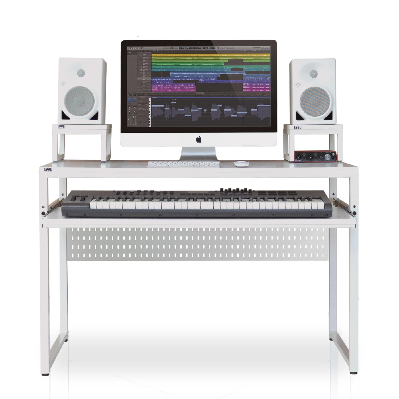 Lyyl Music Studio Desk With Keyboard Tray For Full 88 Keys And 61 Keys, Music Producer Desk (61 Keys, White)(Cable Tray & Speake
