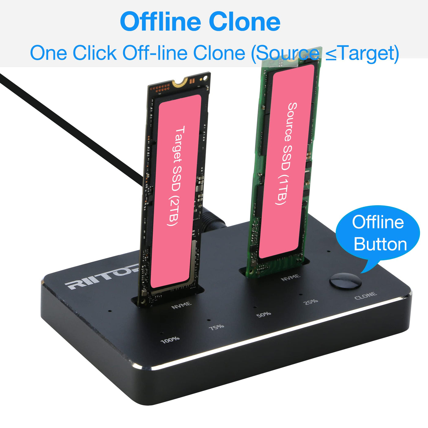M.2 Duplicator, Riitop Dual Nvme Docking Station For 2X M.2 Nvme Ssd To Usb C Reader [Offline Cloner]